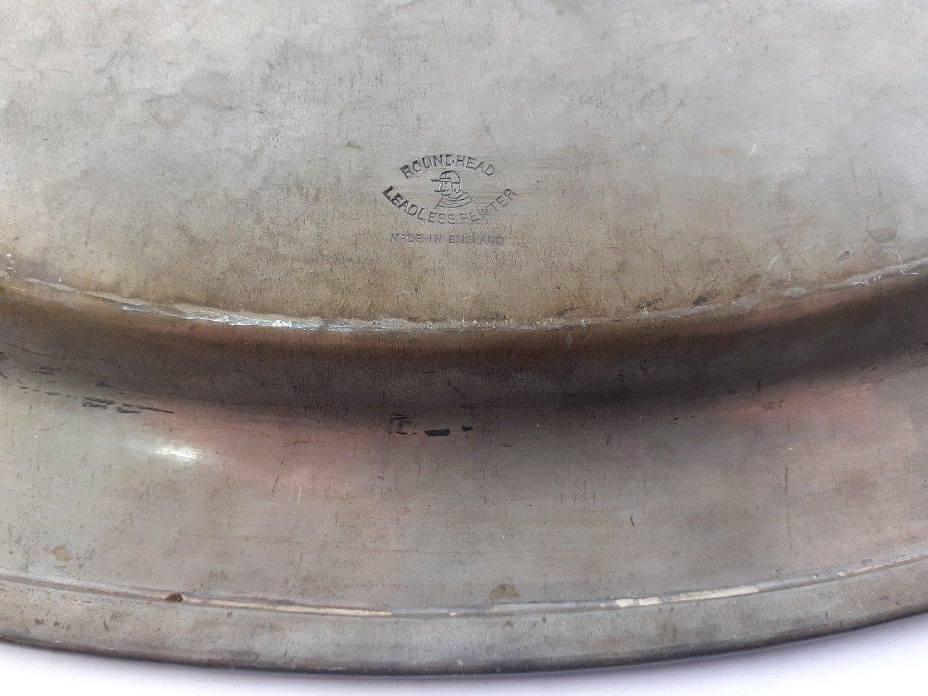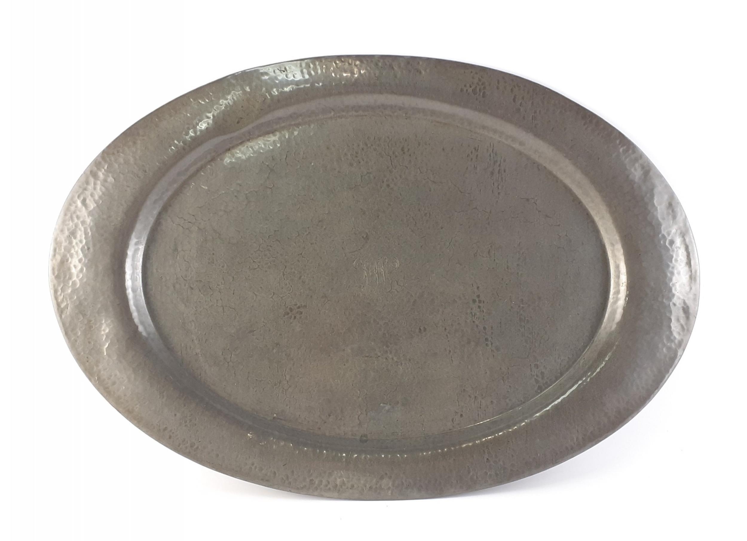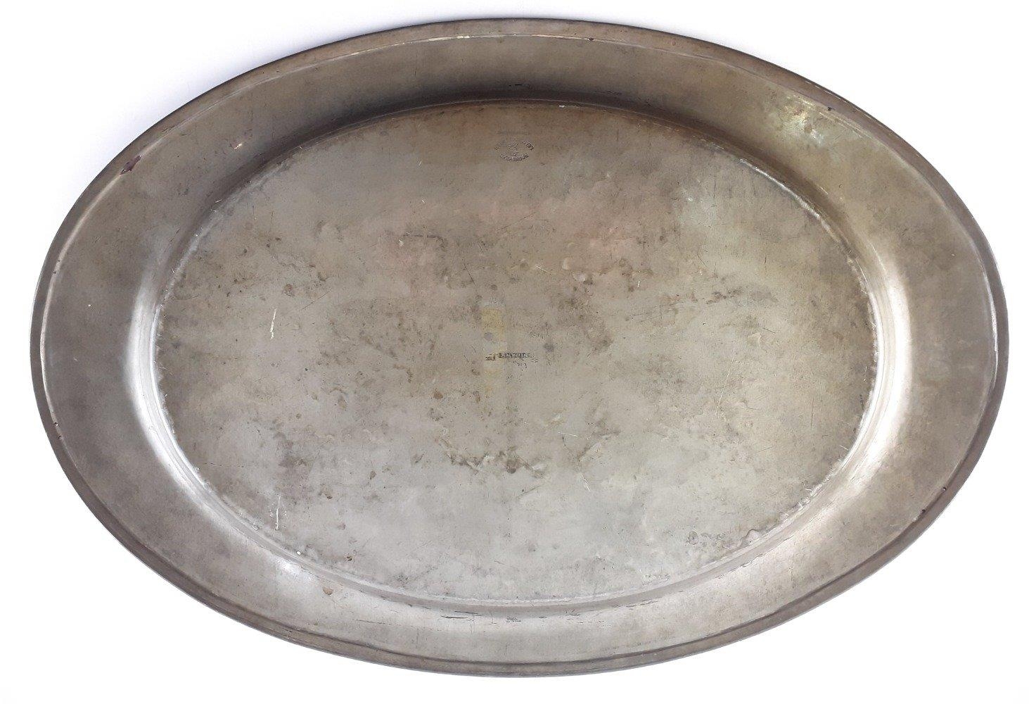 A large Roundhead Leadless Pewter oval salver 50cm across
