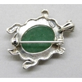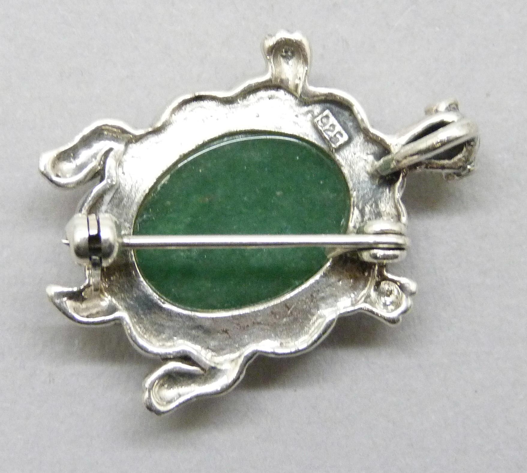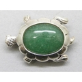 A silver animal brooch / pendant in the form of a turtle, set with a jade/jadeite stone, 3.5cm