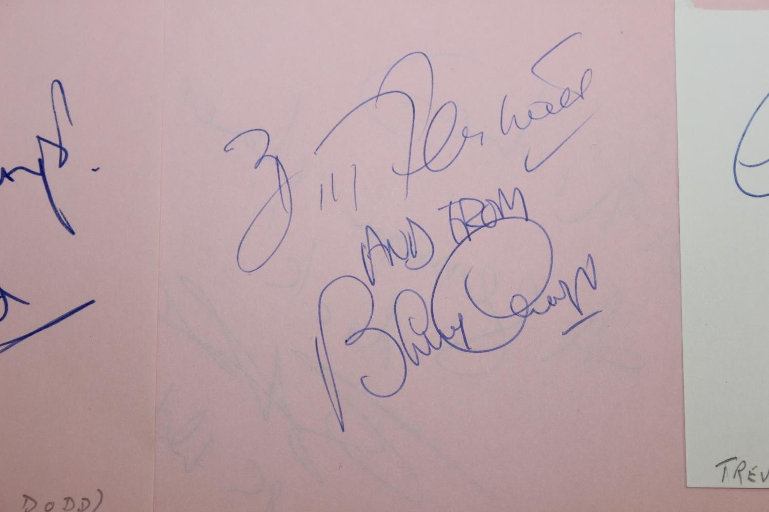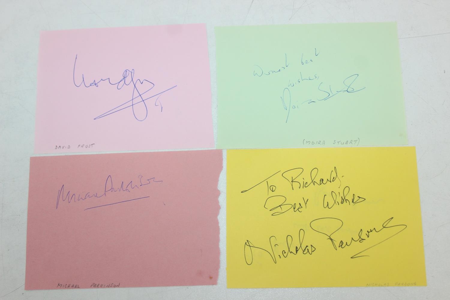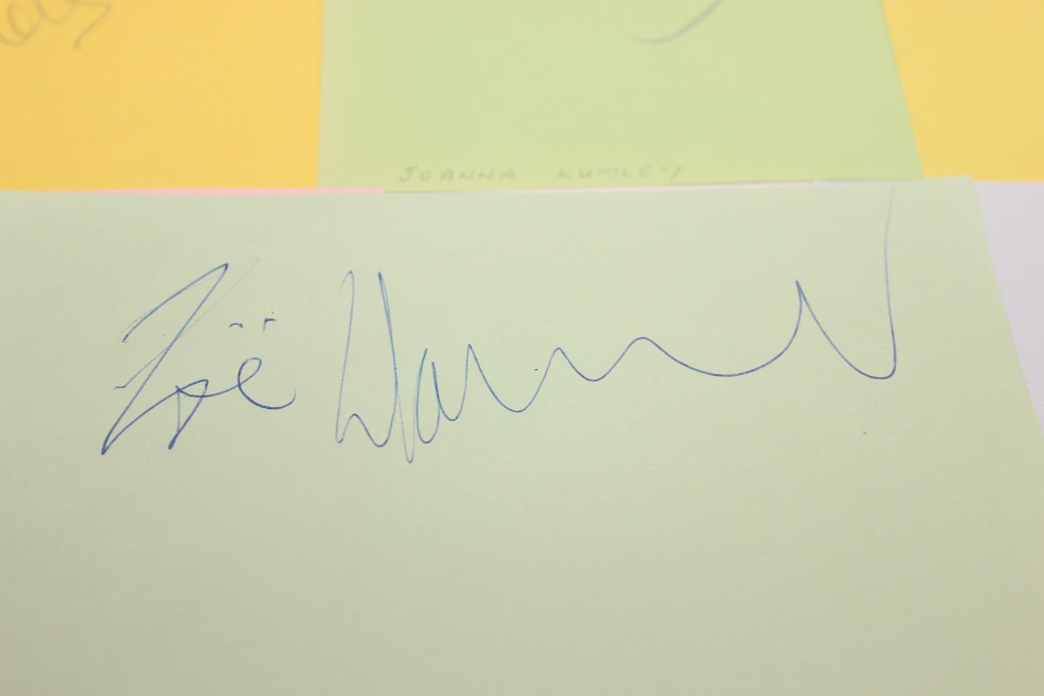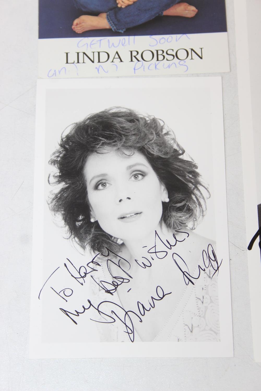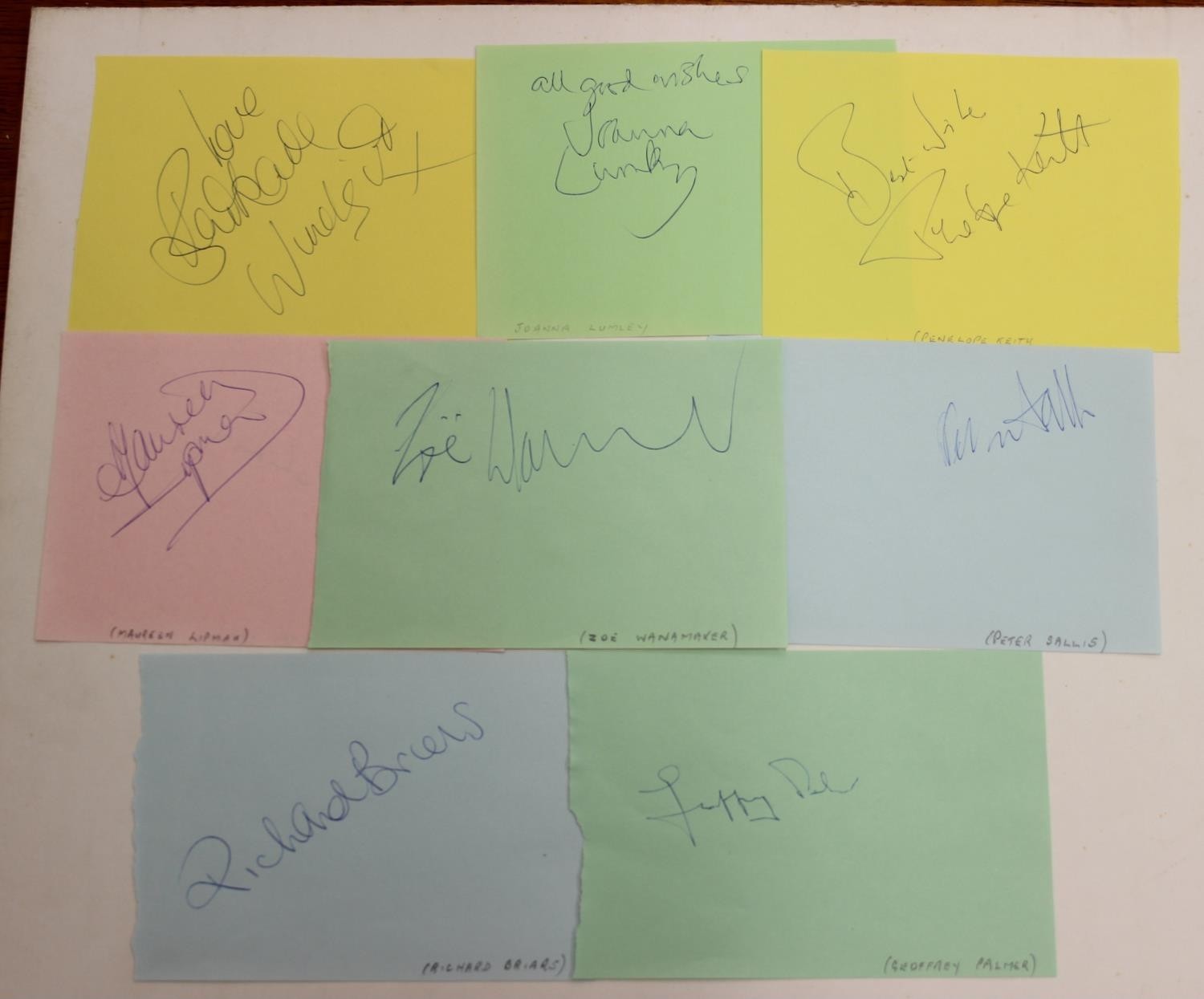Autographs; Actors - British stage and screen star signed publicity photos to include Joanna Lumley, Diana Rigg, Linda Robson, Julia McKenzie and Gary Wilmot and other non photos to include British stage and screen star autographs to include Zoe Wannamaker, Barbara Windsor, Penelope Keith, Joanna Lumley, Maureen Lipman, Peter Sallis, Richard Briers, Geoffrey Palmer, Trevor McDonald, Moira Stewart, Jan Leeming, David Frost, Nicholas Parsons, Michael Parkinson, Leslie Crowther, Frank Carson, Barry Cryer, Bill Pertwee and Kenn Dodd [24]