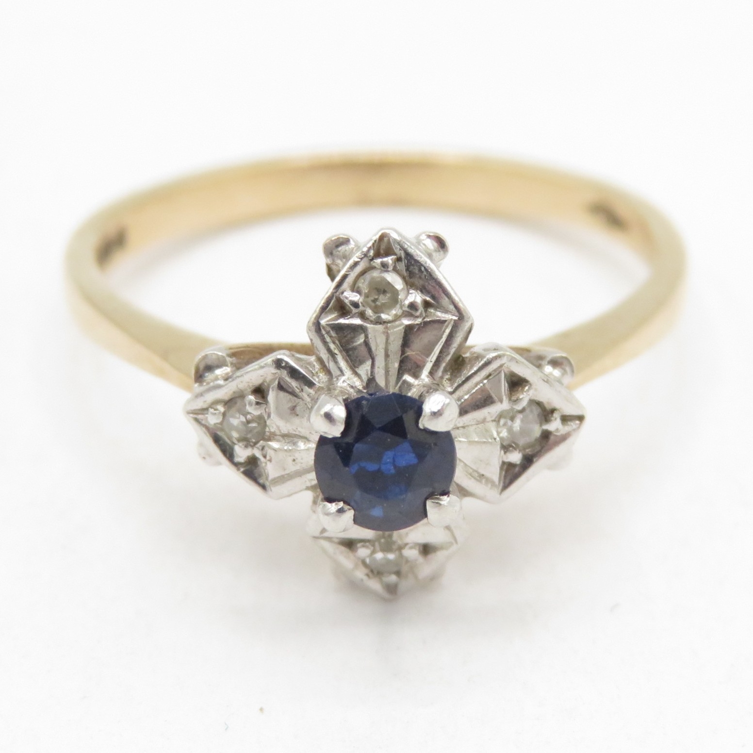9ct gold sapphire and diamond flower ring (1.9g) size L