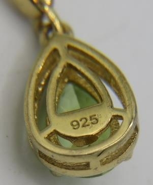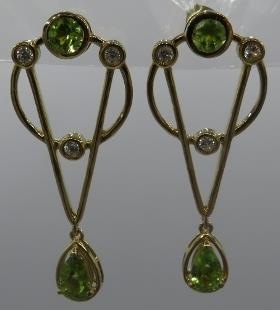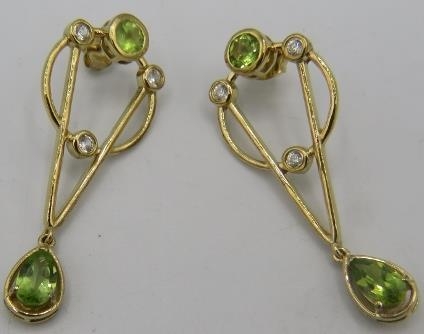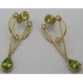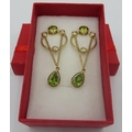 A pair of peridot earrings, 45mm length, post back, 14k/yellow gold and sterling silver.
