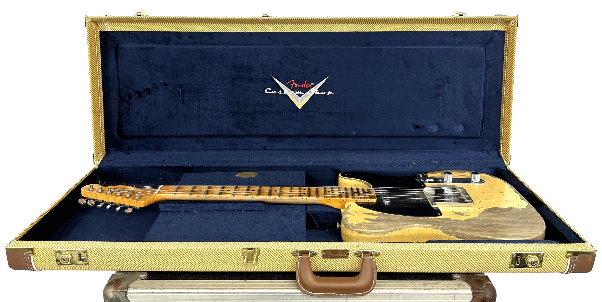 2023 Fender Custom Shop Limited Edition 1950 Double Esquire electric guitar, made in USA; Body: heavy relic Nocaster blonde finished ash; Neck: maple chunky D profile relic neck with relic fretboard; Frets: good; Electrics: working, handwired 50-51 Blackguard pickups; Hardware: good; Case: original hard case with certificate of authenticity and papers; Weight: 3.36kg; Overall condition: excellent