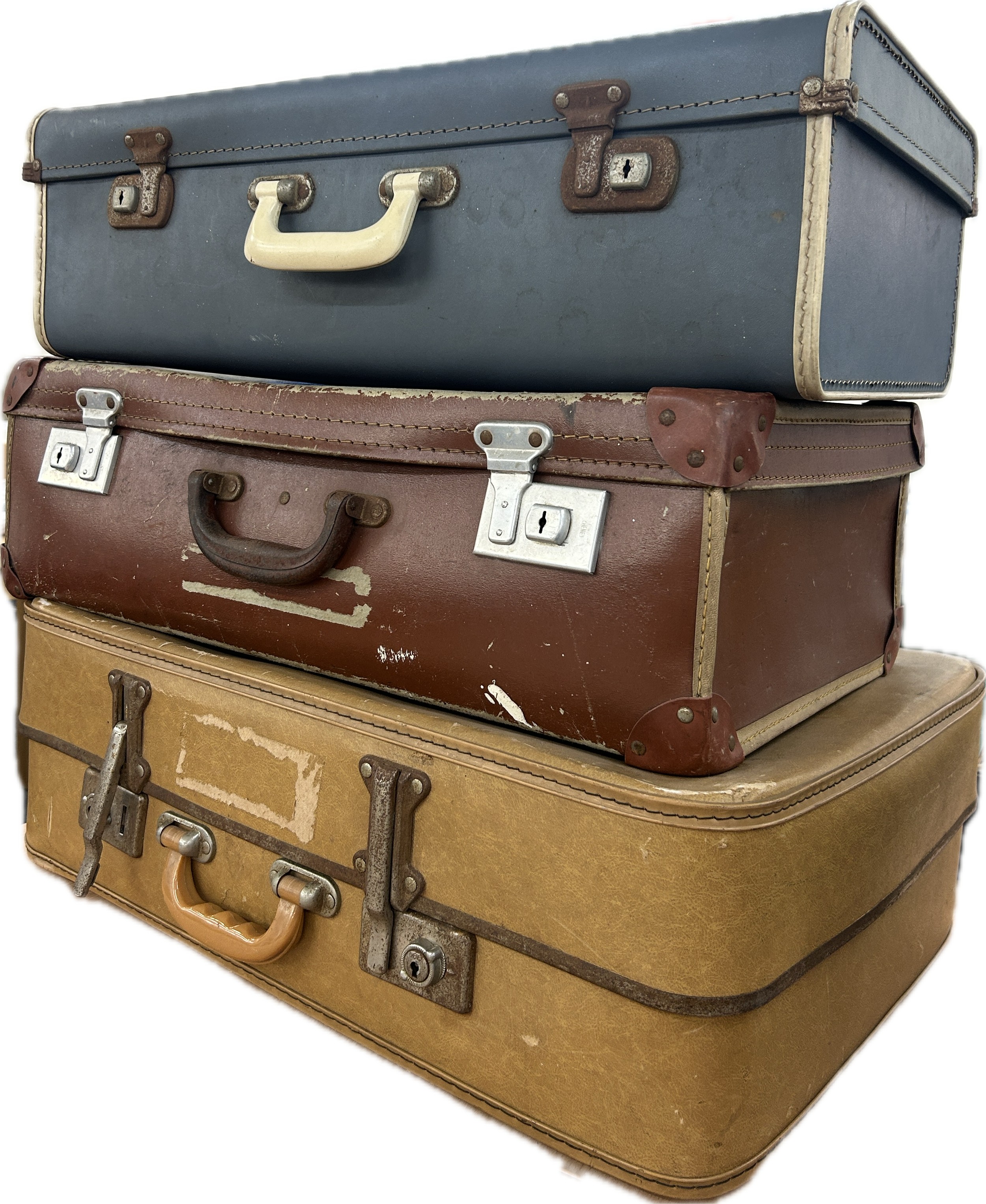 Selection of three vintage travelling suitcases