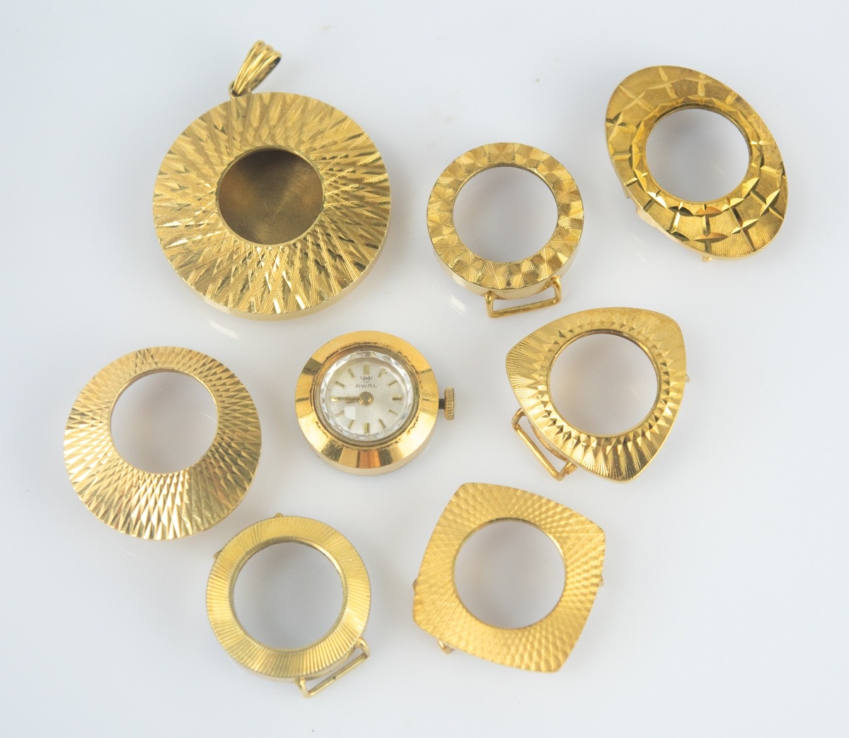 LADY'S AWOL, SWISS WATCH, with 17 jewels incabloc movement, silvered dial with batons, six gold plated bezels to form various watch cases and another to convert to a pendant watch, (c/r working when catalogued)