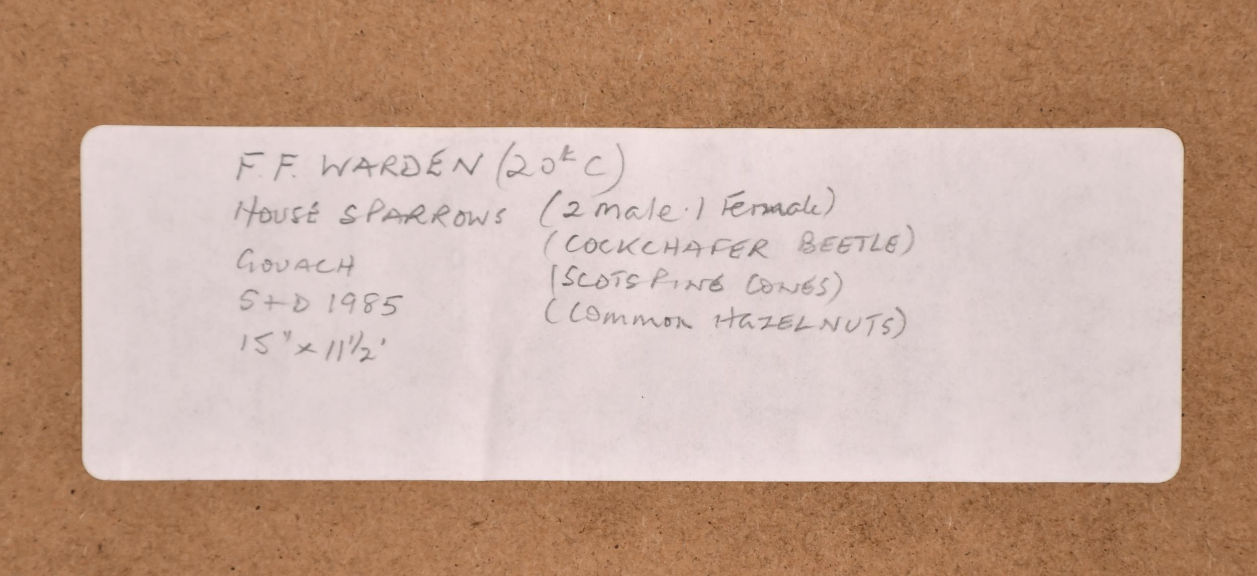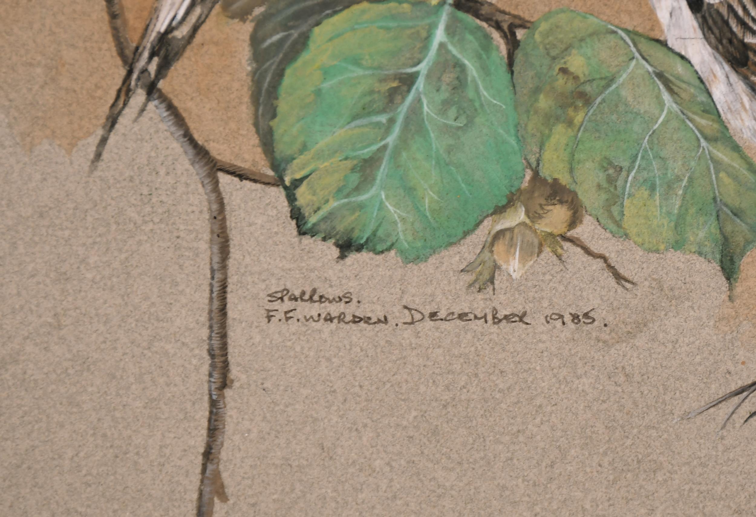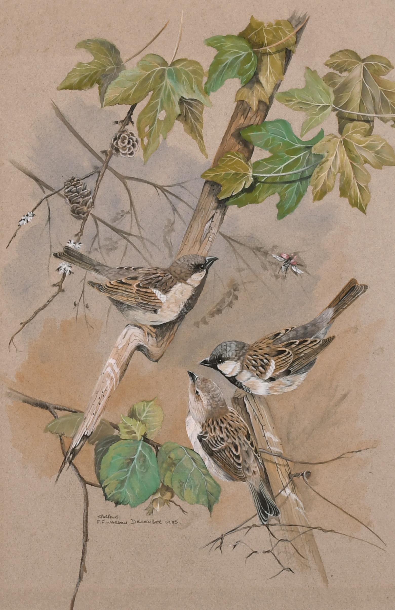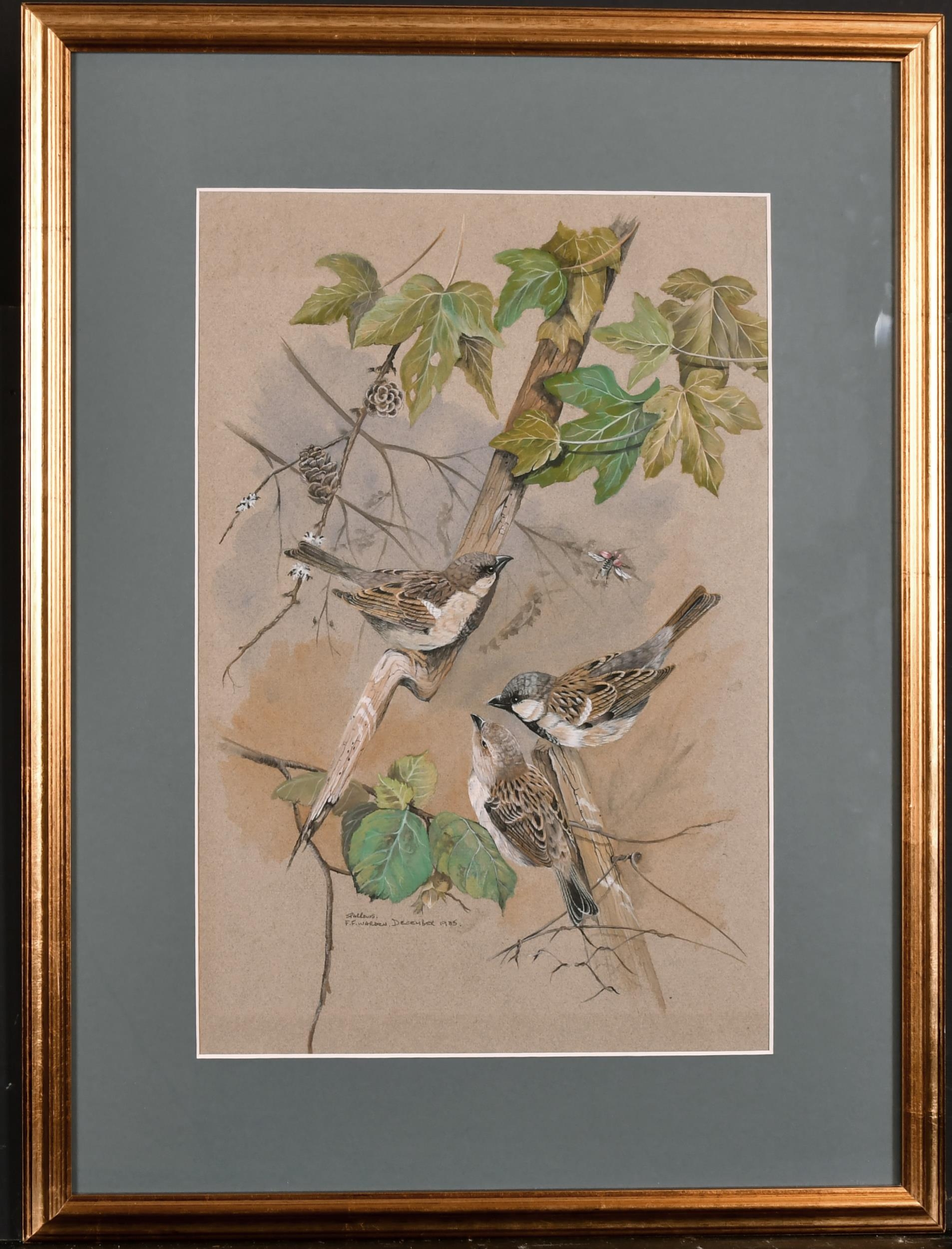 F. F. Warden (20th Century) British. "Sparrows", Watercolour, Signed, Inscribed and Dated December 1985, 17.5" x 12" (44.4 x 30.5cm)