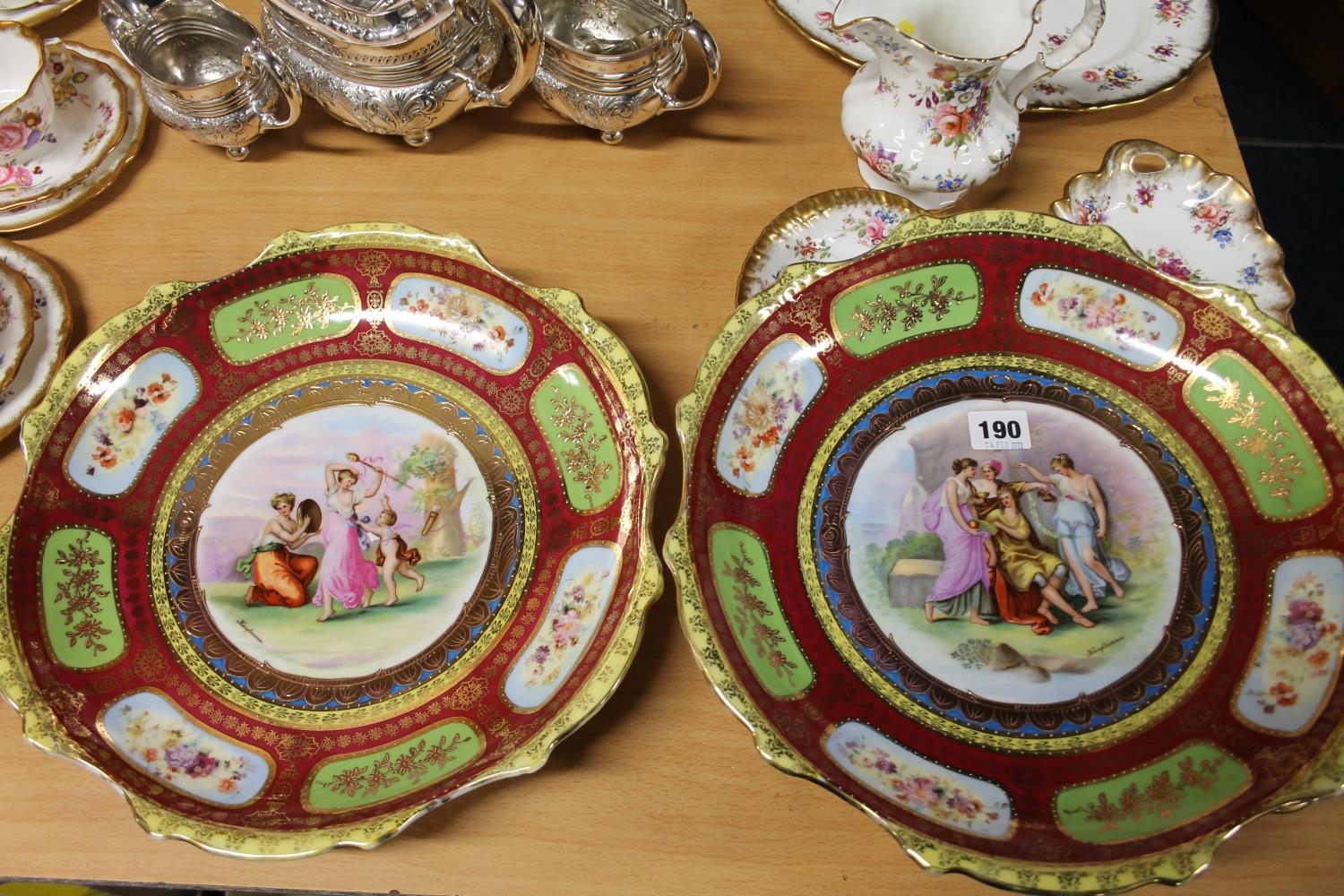 Pair of Vienna style chargers, depicting figures, signed Kaufmann.