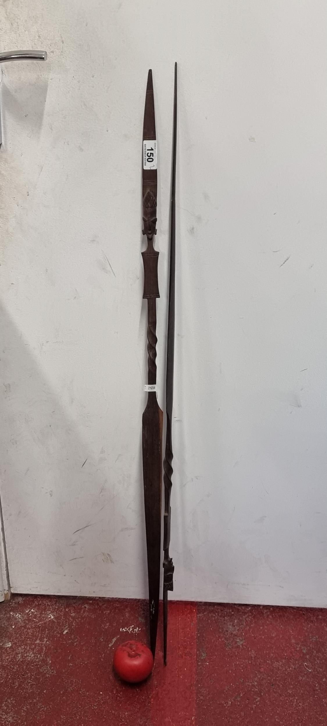 Two fascinating hand carved African tribal hunting spears / daggers.