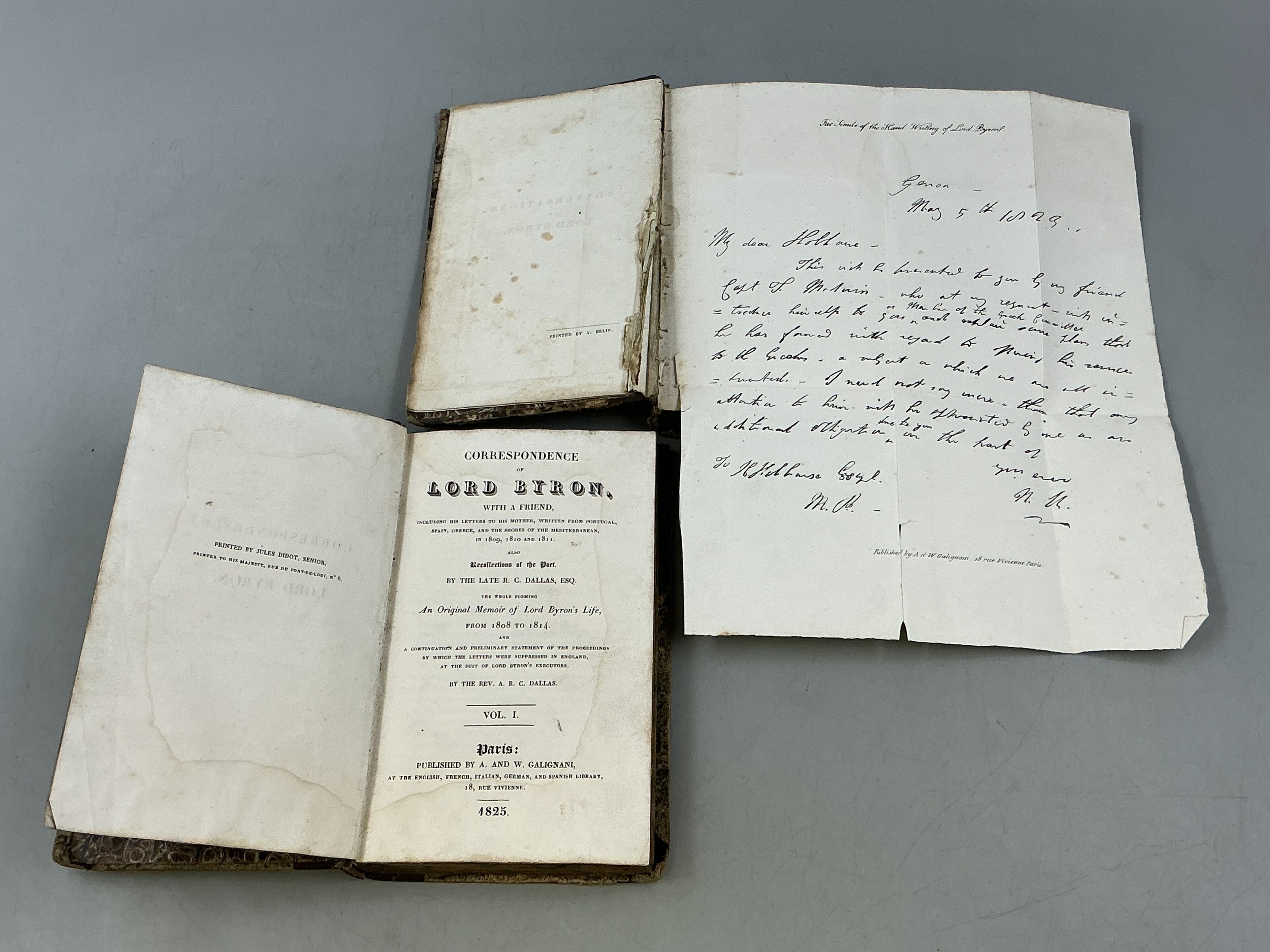 Two Antique Books to include Journal of the Conversations of Lord Byron: Noted during a Residence with His Lordship at Pisa, in the Years 1821 and 1822 and Correspondence of Lord Byron with a Friend Book.