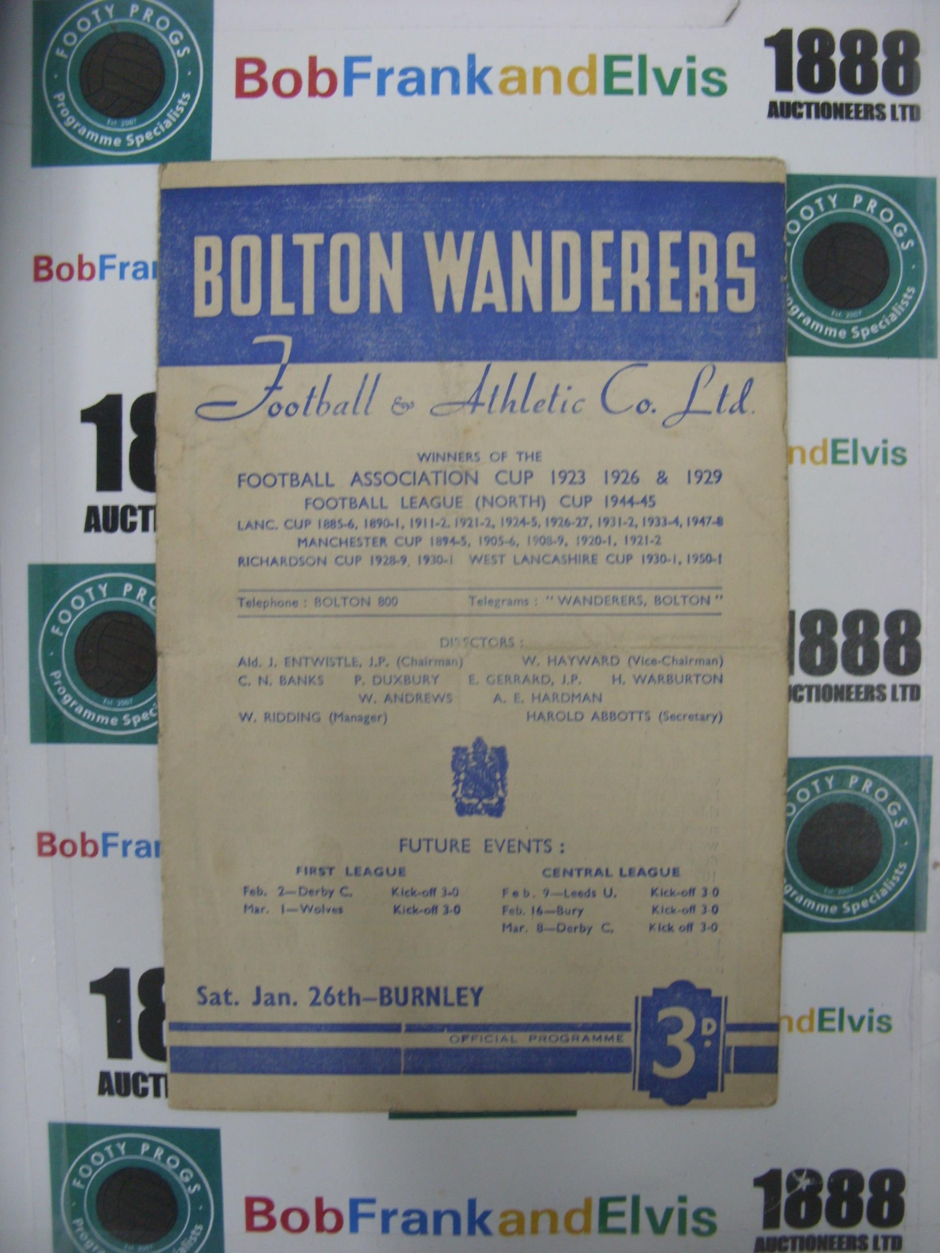 BOLTON WANDERERS, 1951/1952, a football programme from the game versus Burnley, played on 26/01/1952 (folded).
