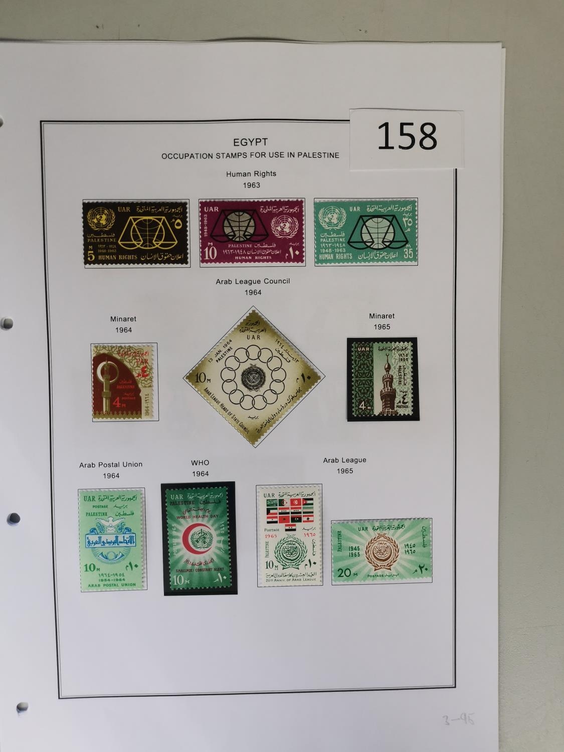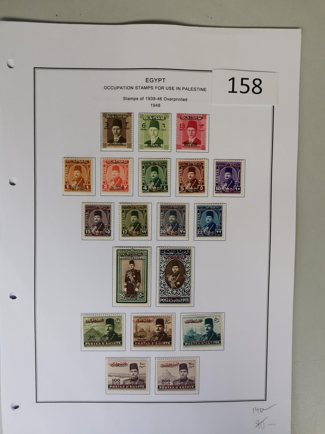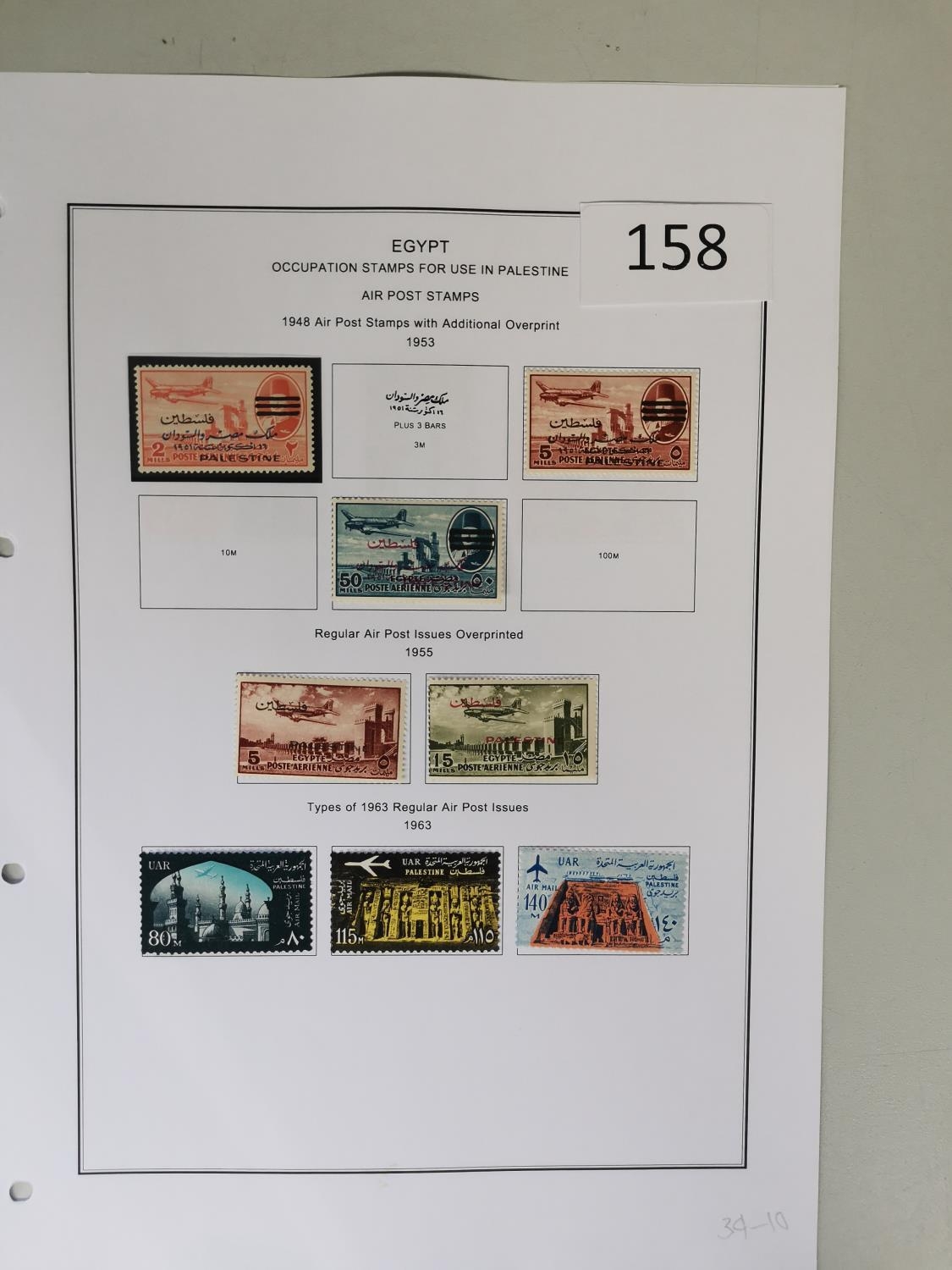 EGYPT. OCCUPATION OF PALESTINE. M collection of 1948 to 1960's on printed leaves incl. 1948 Postage and Air sets 1953 Postage and Air sets less Air 5m 1955-6 to £1 commems etc. Cat. approx. £1 000+. (approx. 160)
