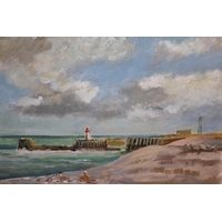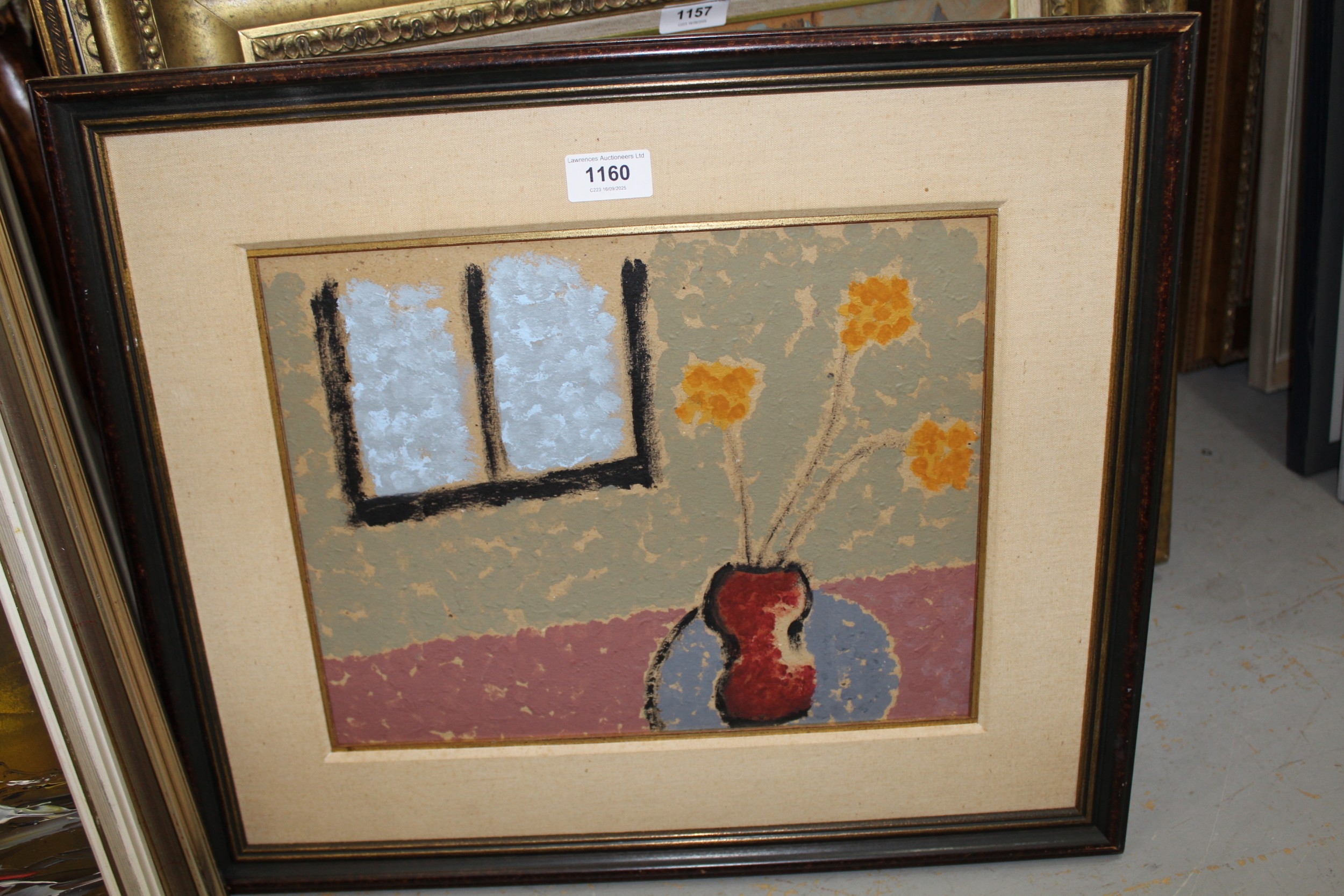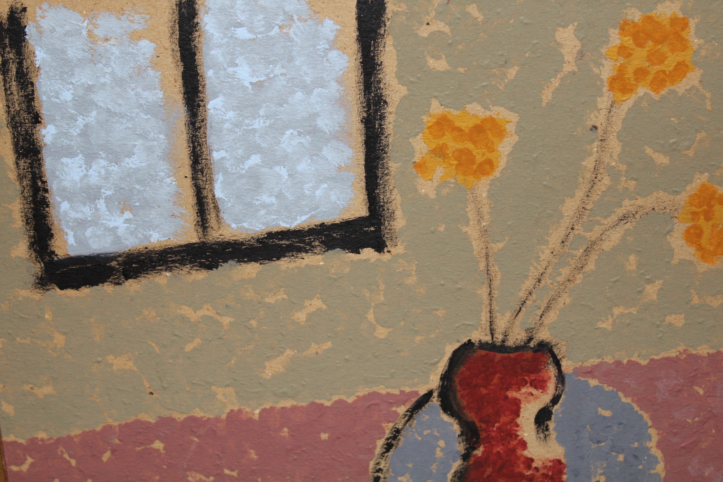 Impressionist style, oil on board, yellow flowers in a vase by a window, 28 x 34cm