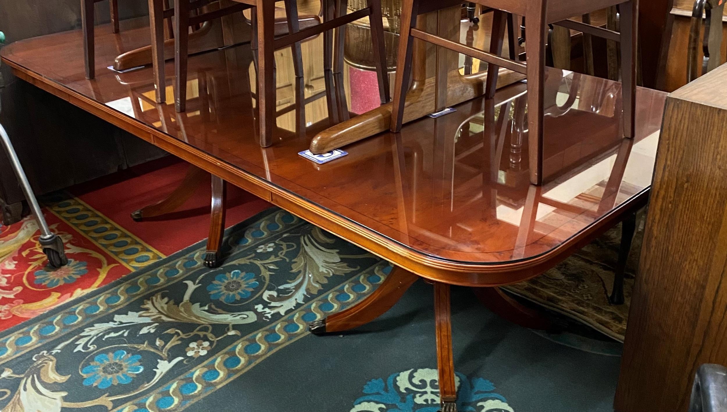 8FT YEW TREE DOUBLE PEDESTAL DINING TABLE WITH GLASS PROTECTIVE COVER