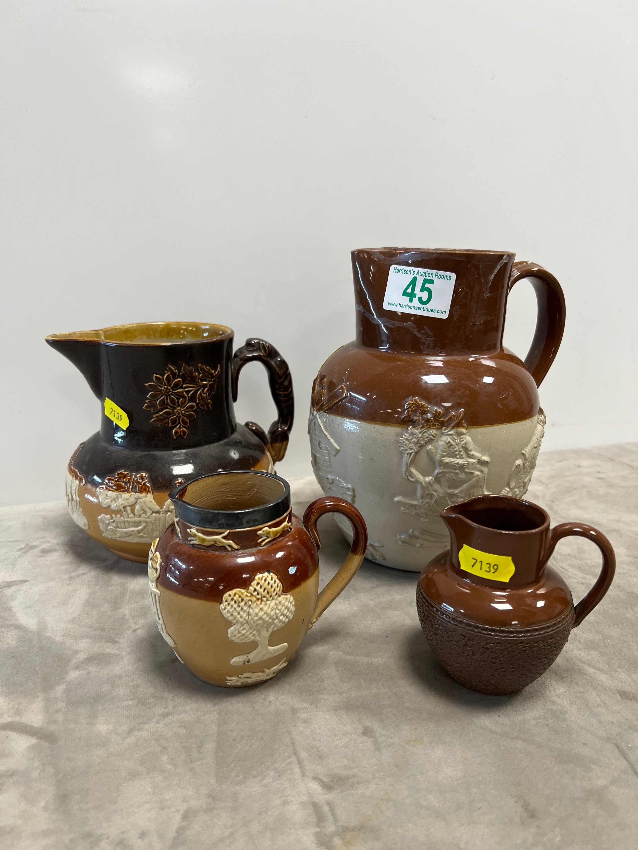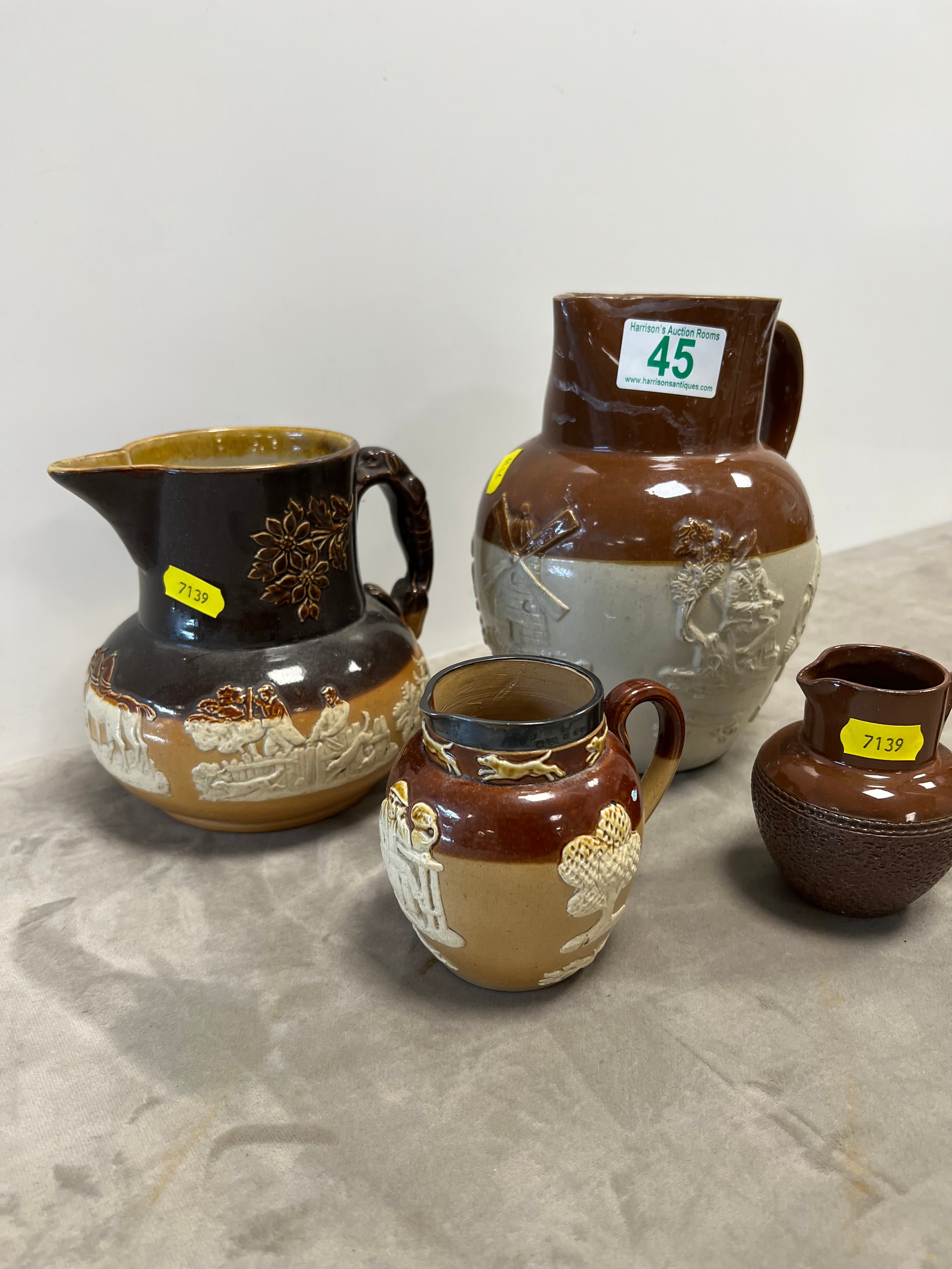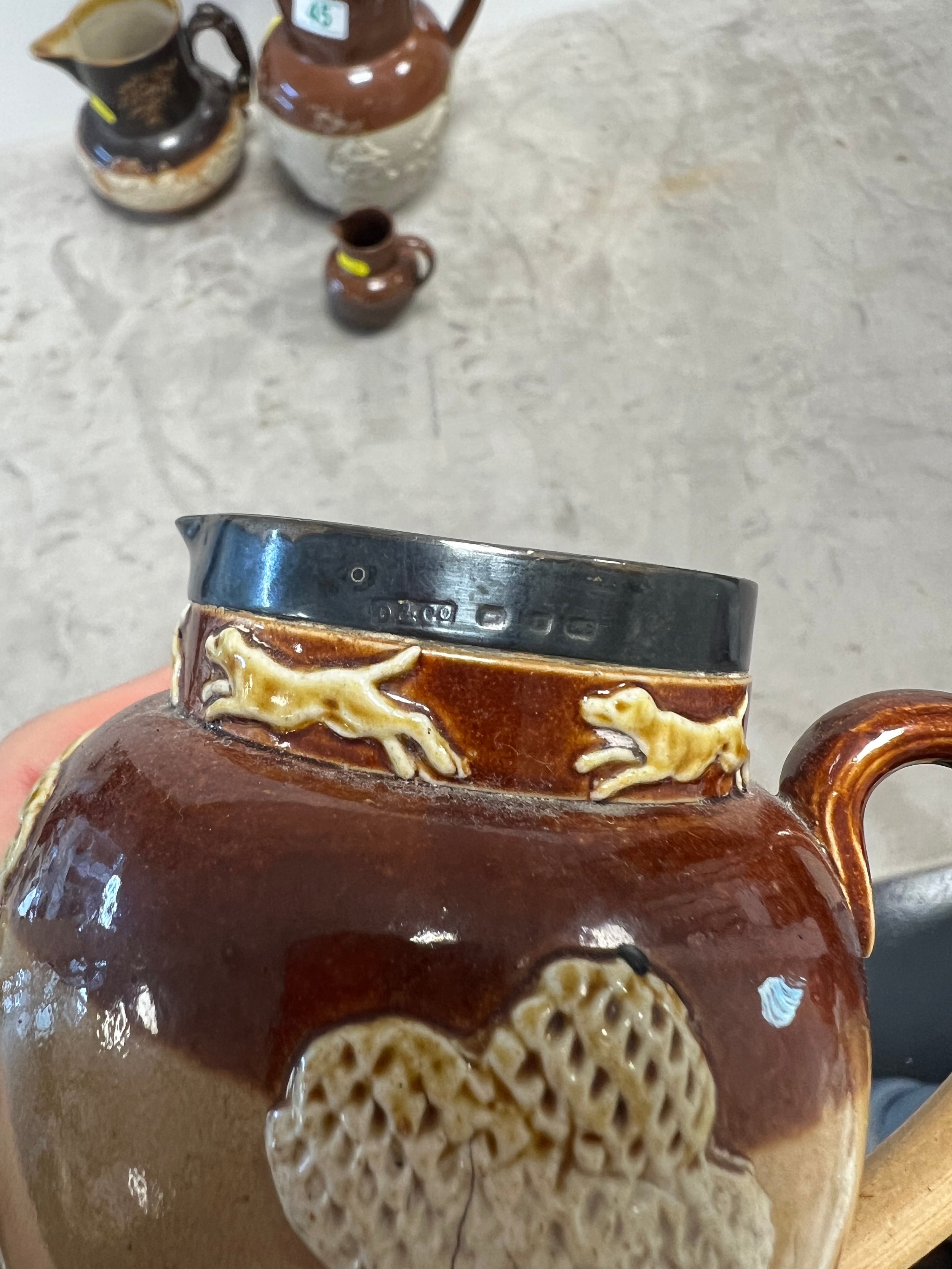 Early 20th century Doulton Lambeth silver topped jug + 3 jugs