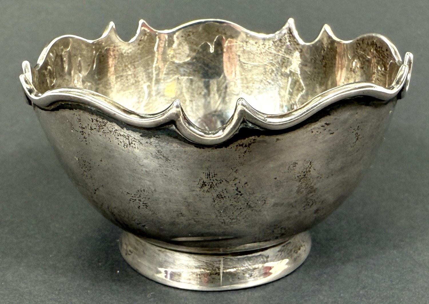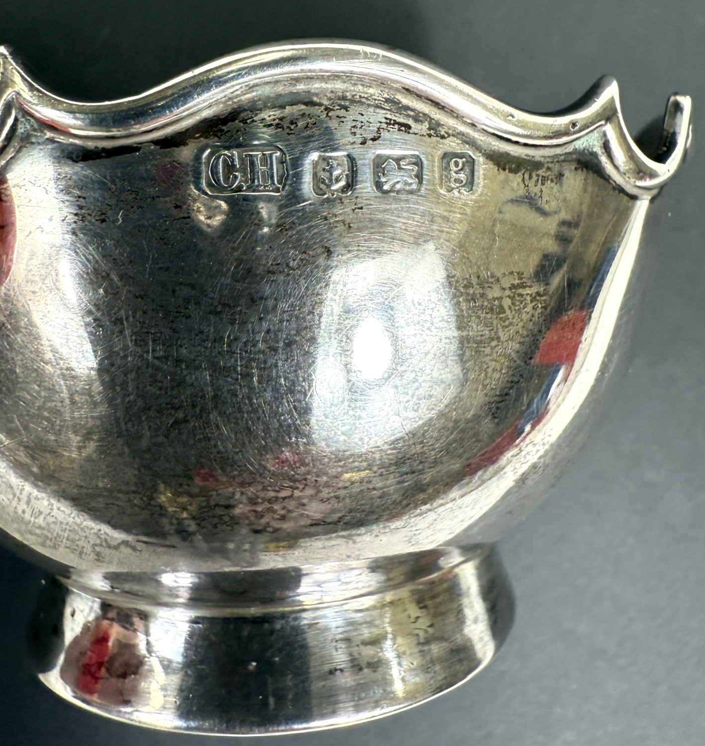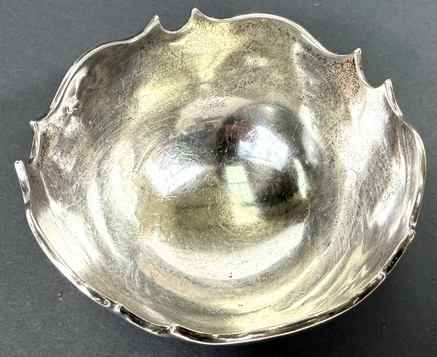 A hall marked silver pedestal bowl with peaked border, CH marks probably Charles Horner 2.5oz