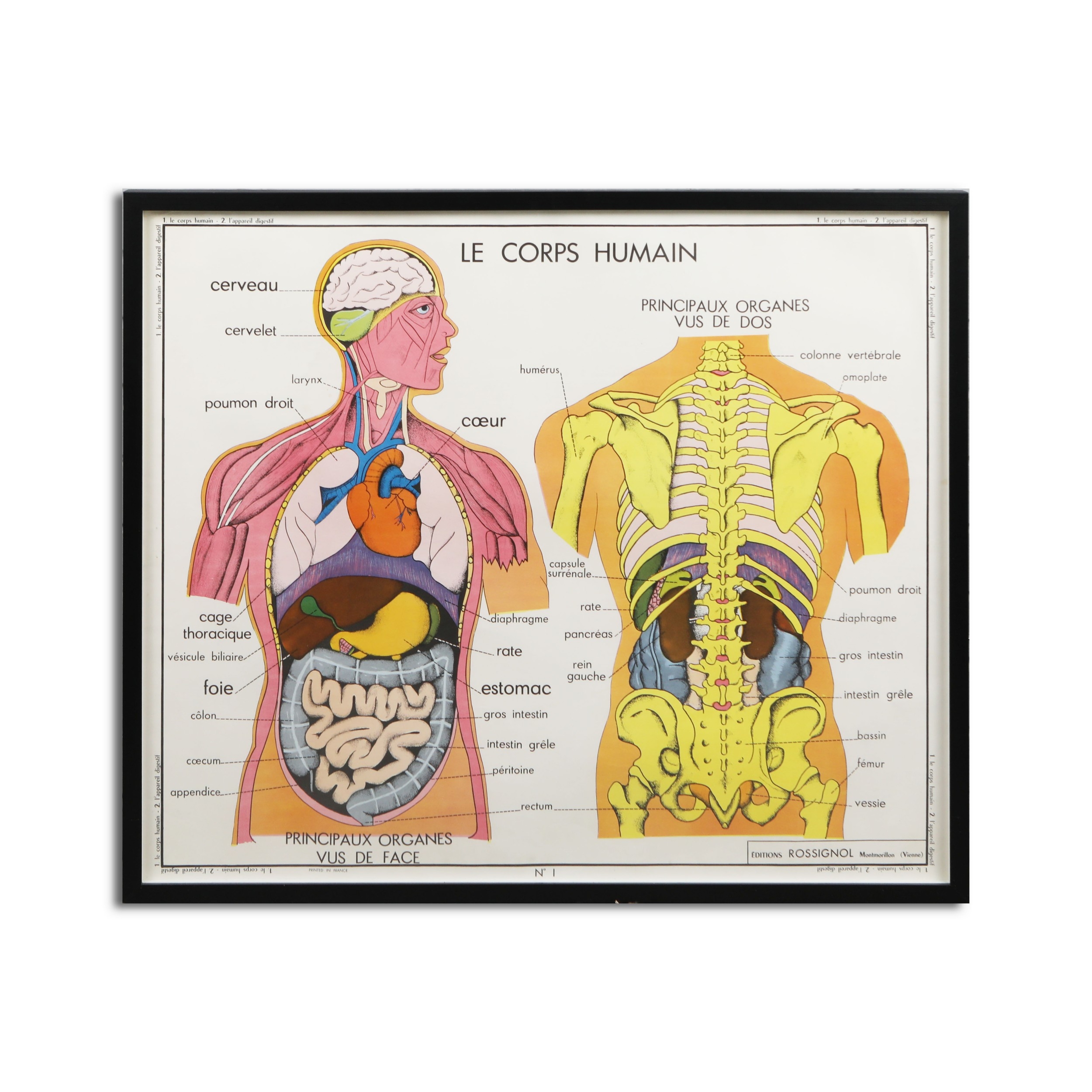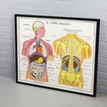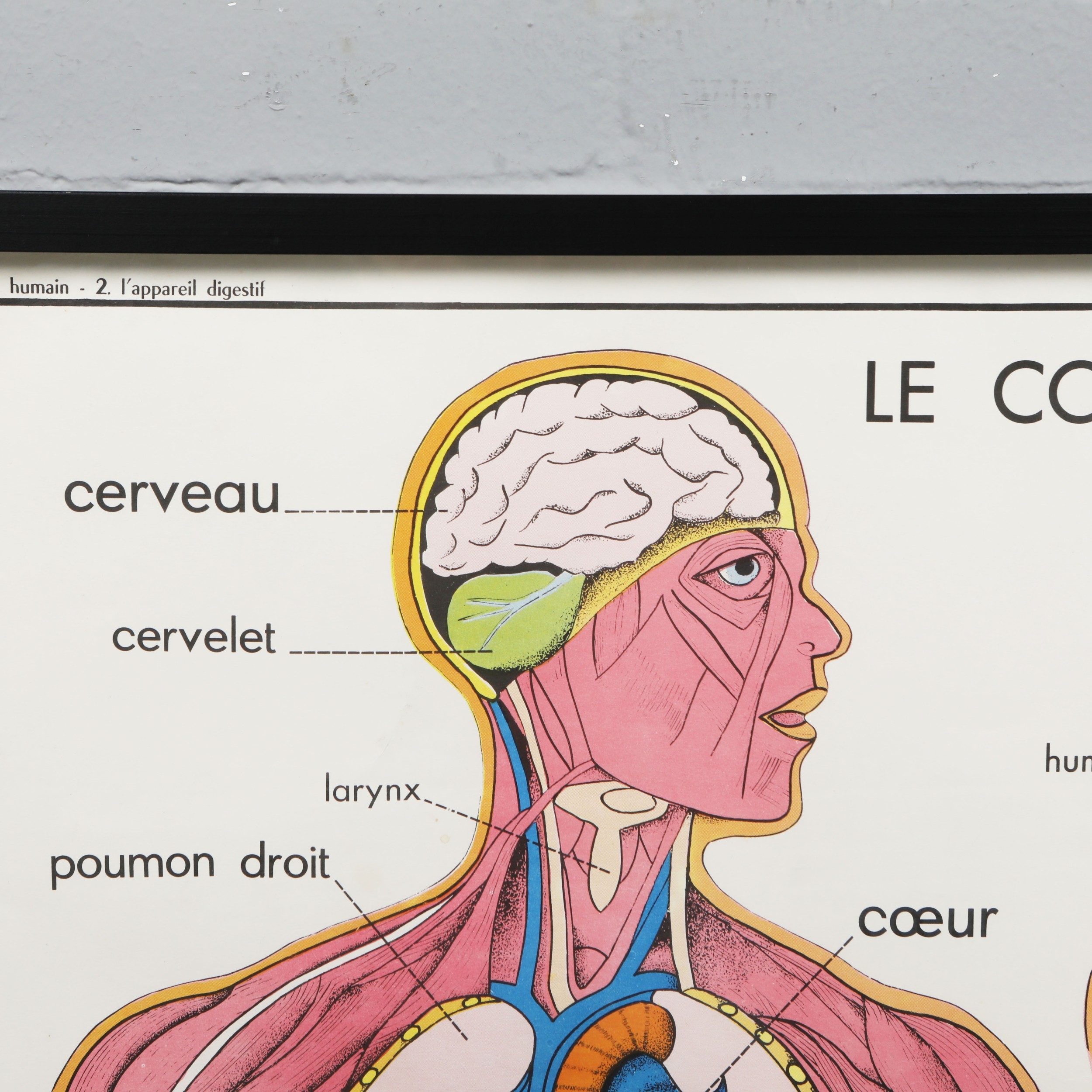 THE HUMAN BODY. medical poster, framed and glazed, 78 cm H x 93 cm W.