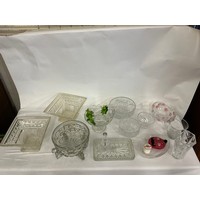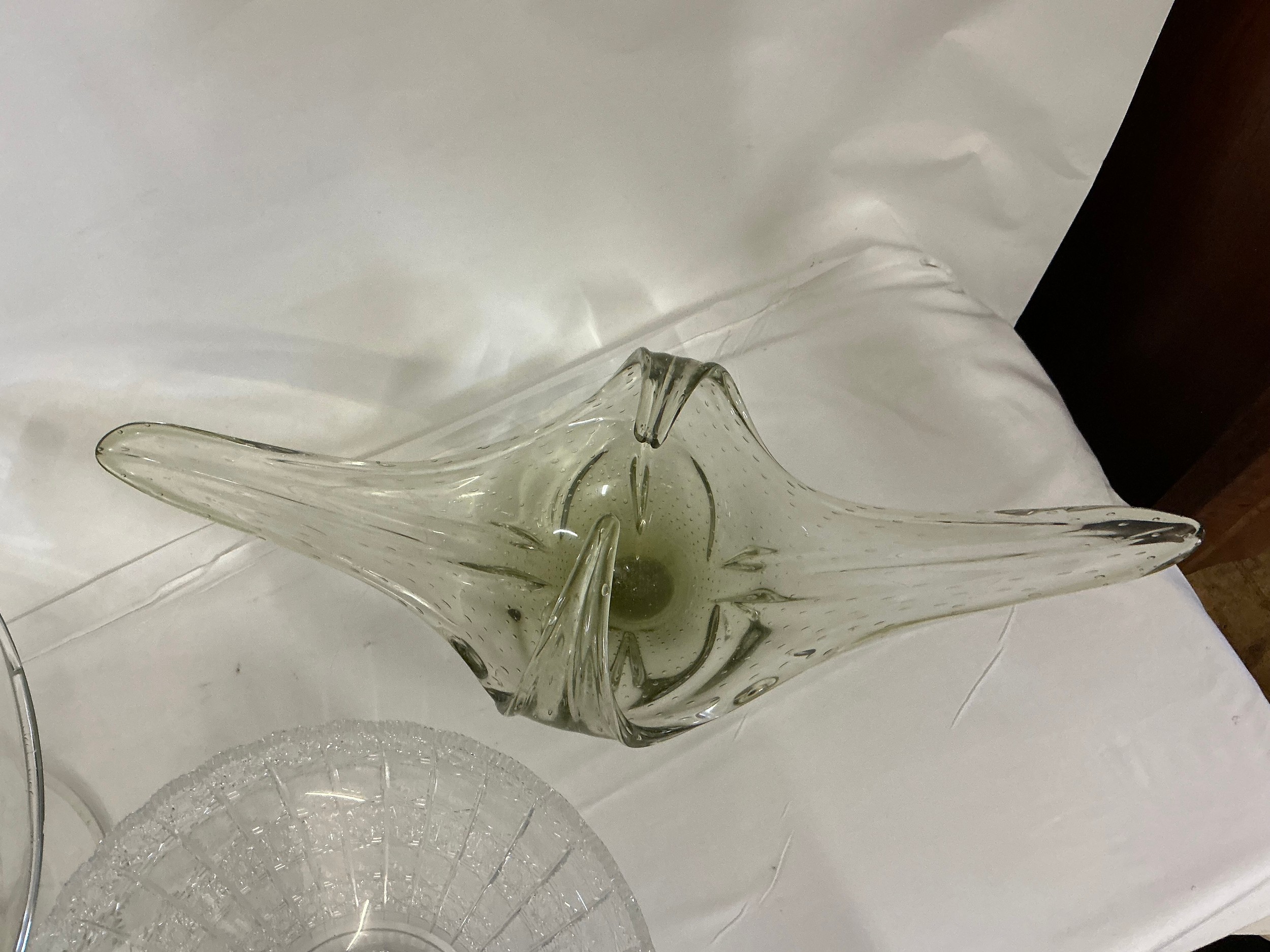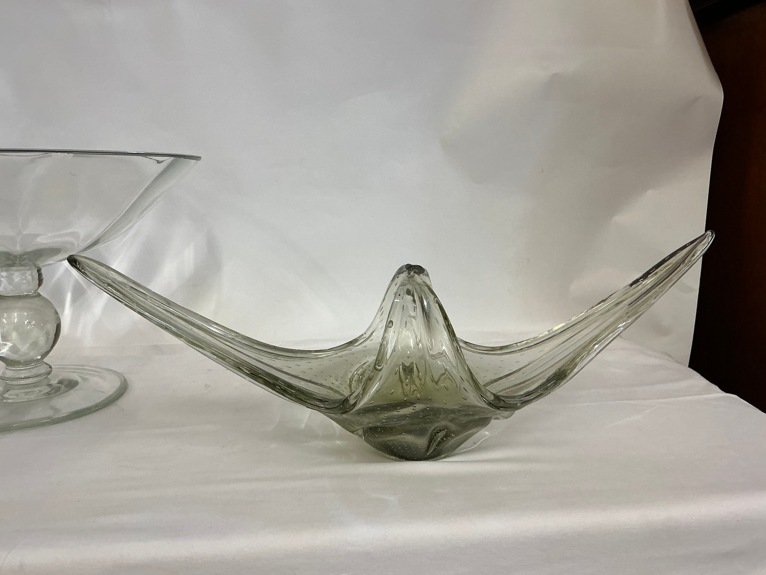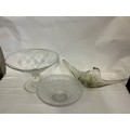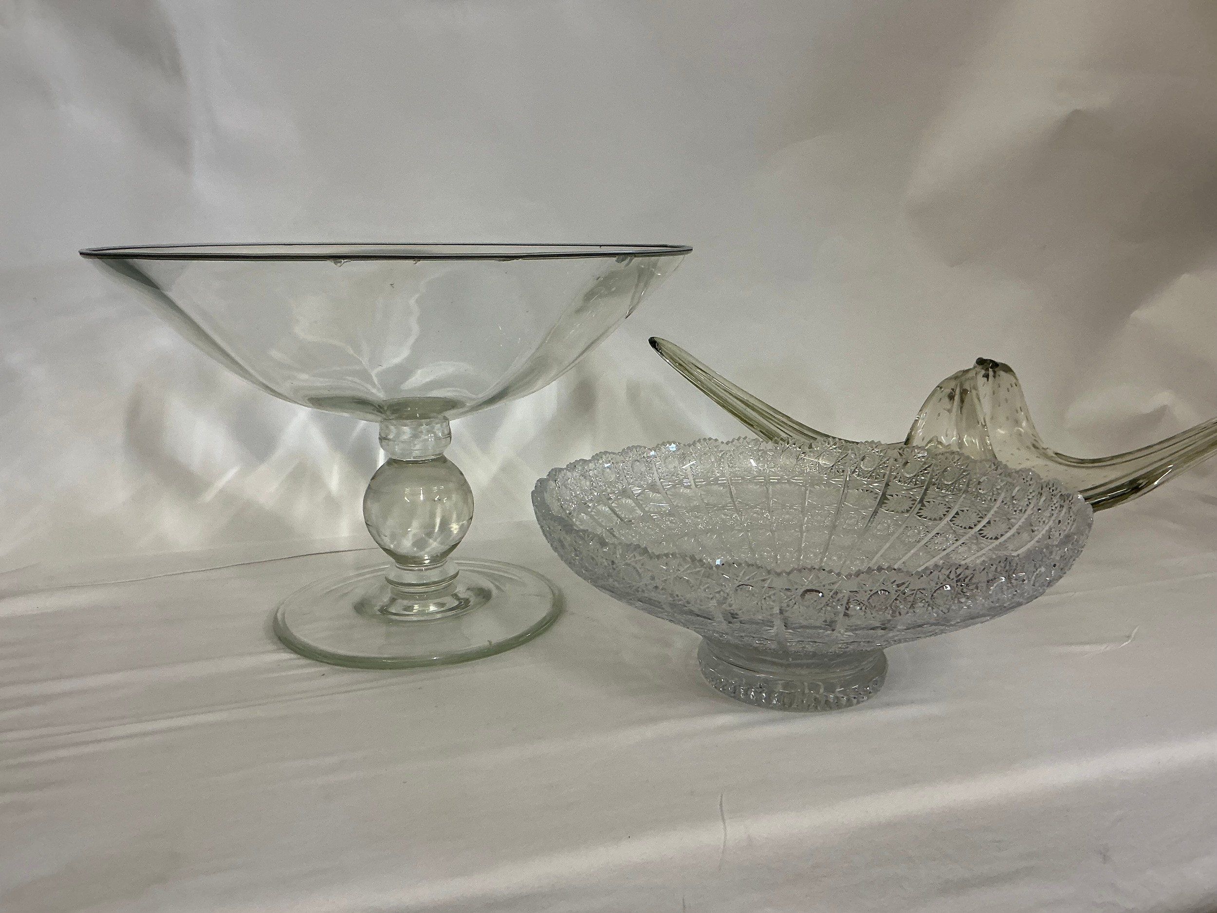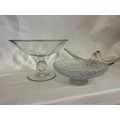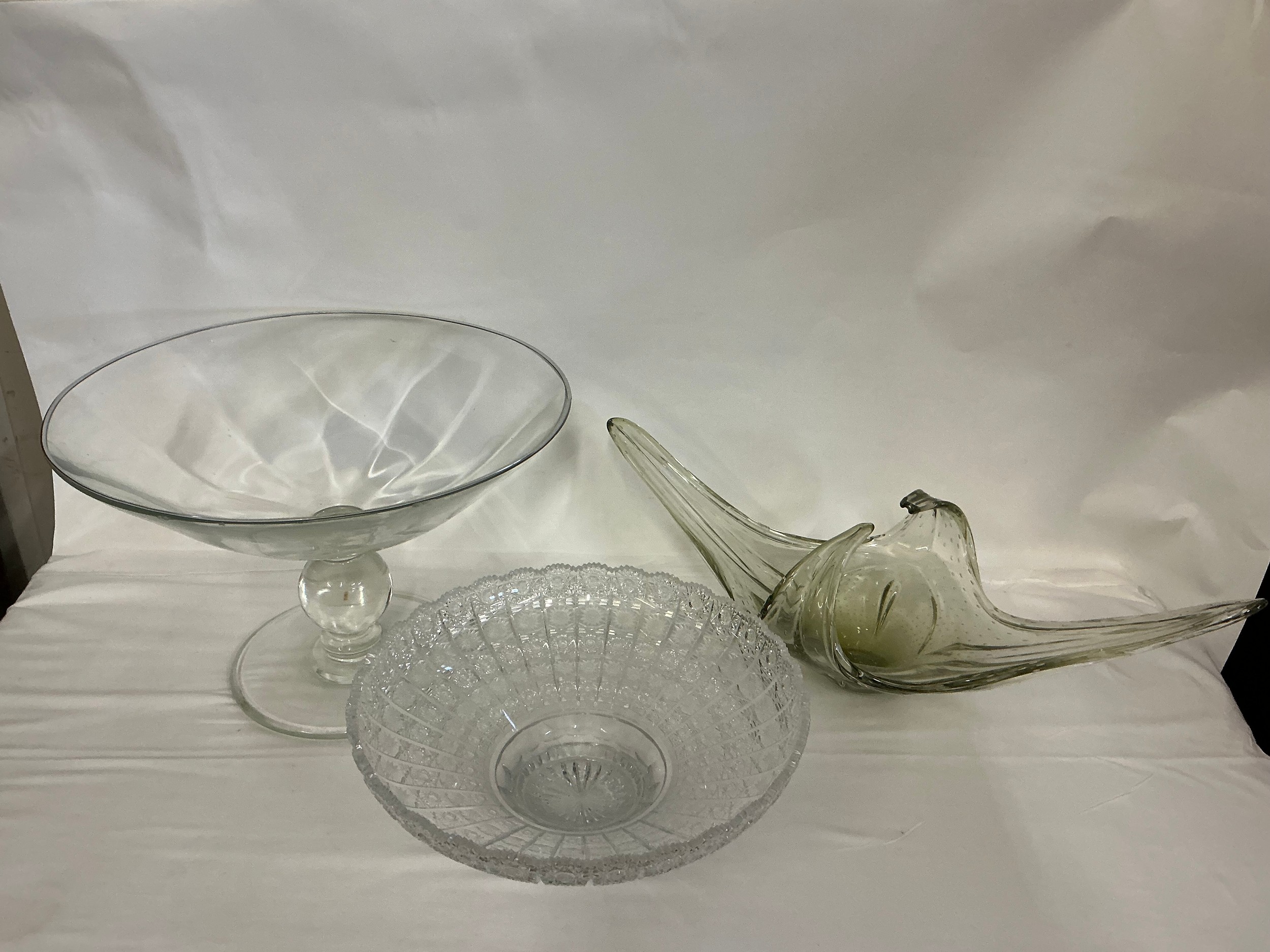 A 1950s Free Form Bowl, a Glass Pedestal Bowl & a Flared Out Cut Glass Fruit Bowl.