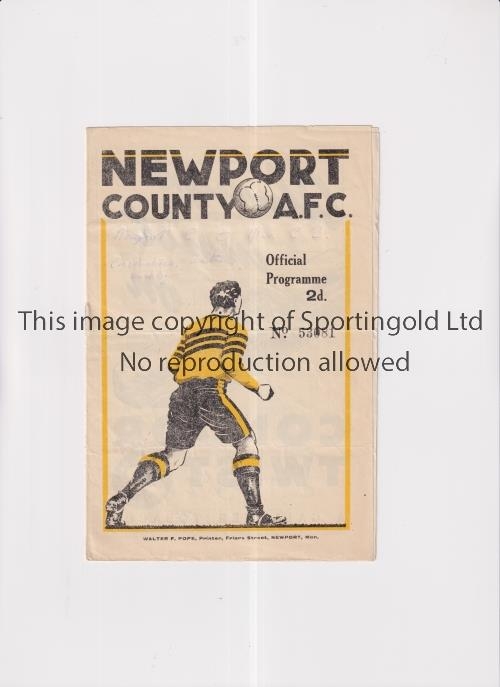 NEWPORT COUNTY V MANCHESTER CITY 1946 Programme for the League match at Newport 7/12/46, slightly creased and small writing on the cover. Generally good