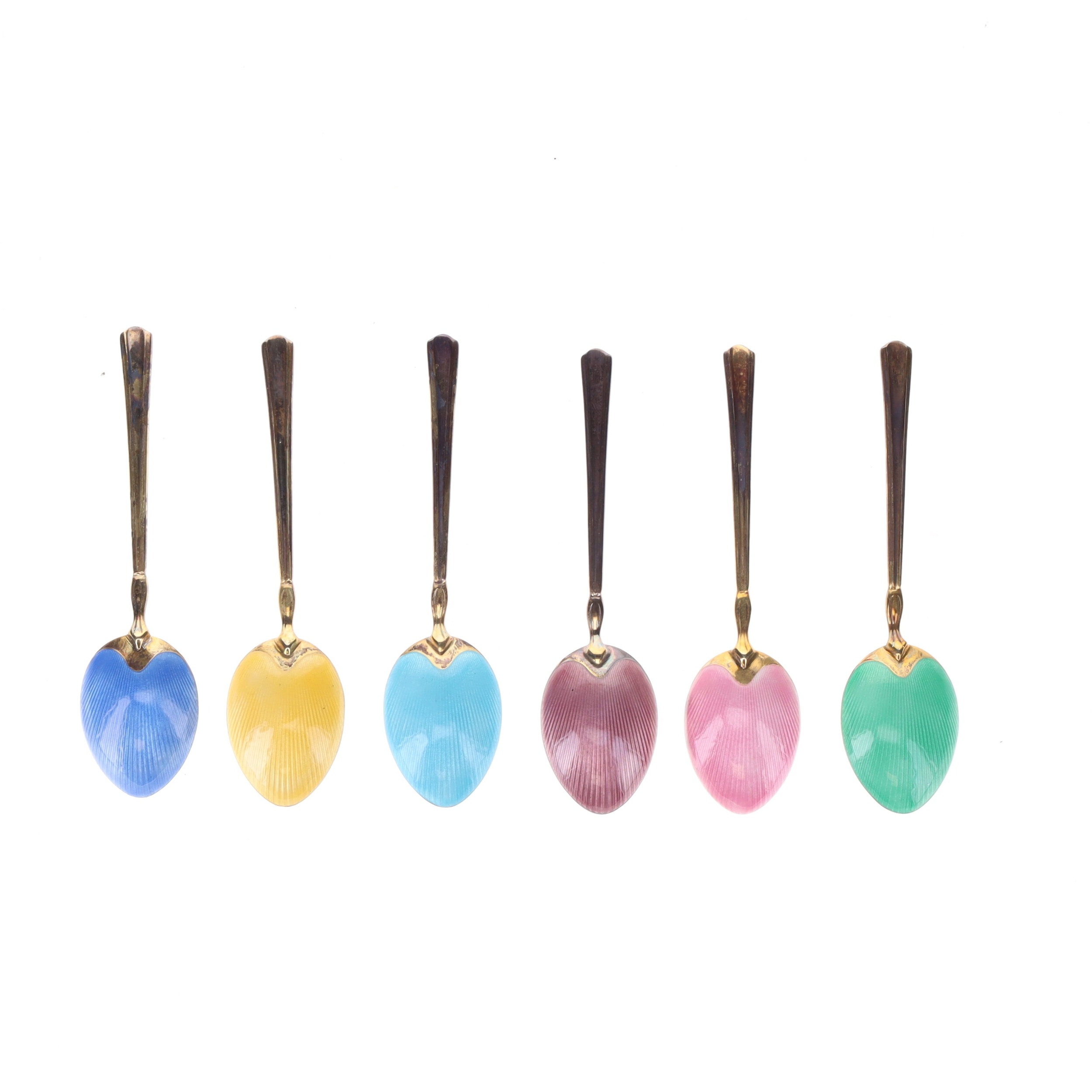 Silver and Guilloche Enamel Teaspoon Set, 52g
