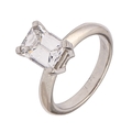 A diamond ring, with emerald cut diamond (approx 6.5 x 8.3mm), in platinum, 6.5g, size I
