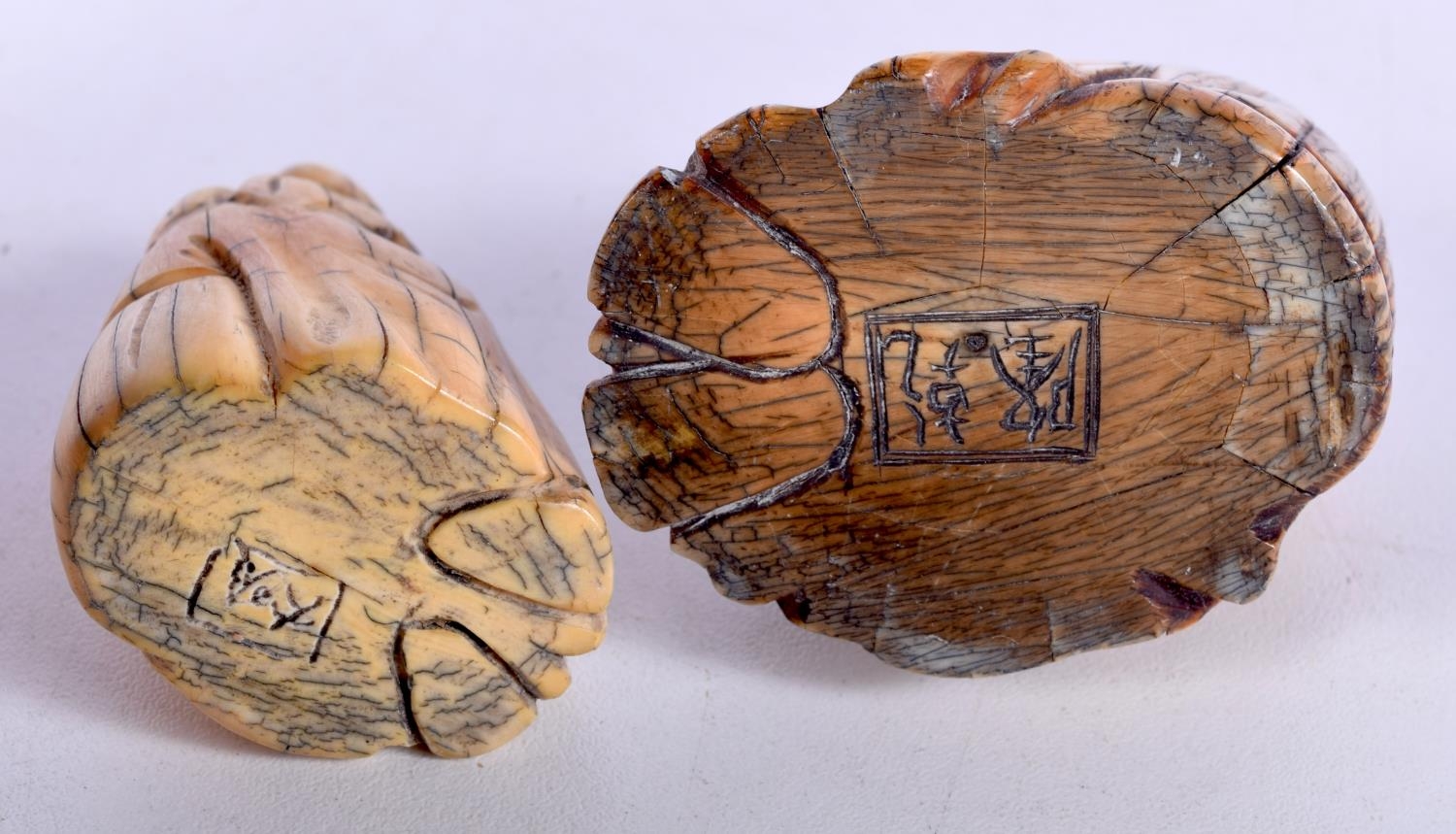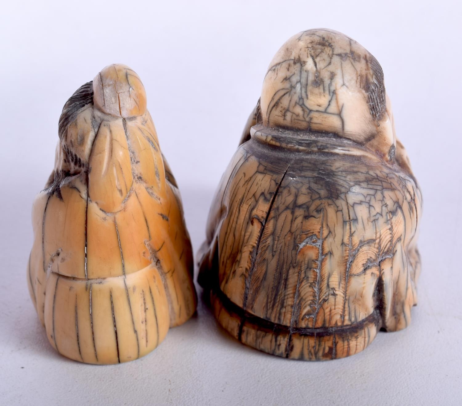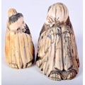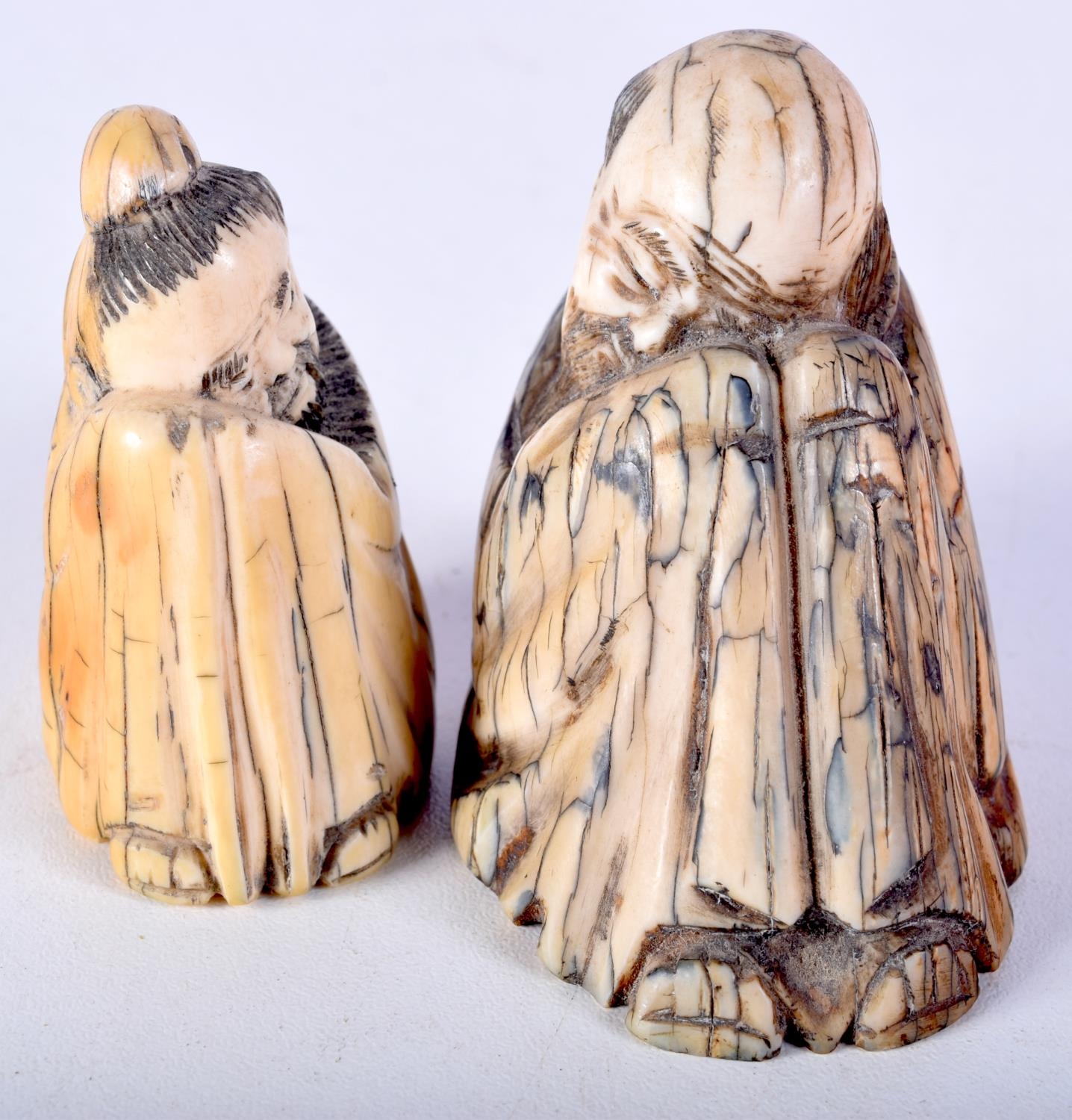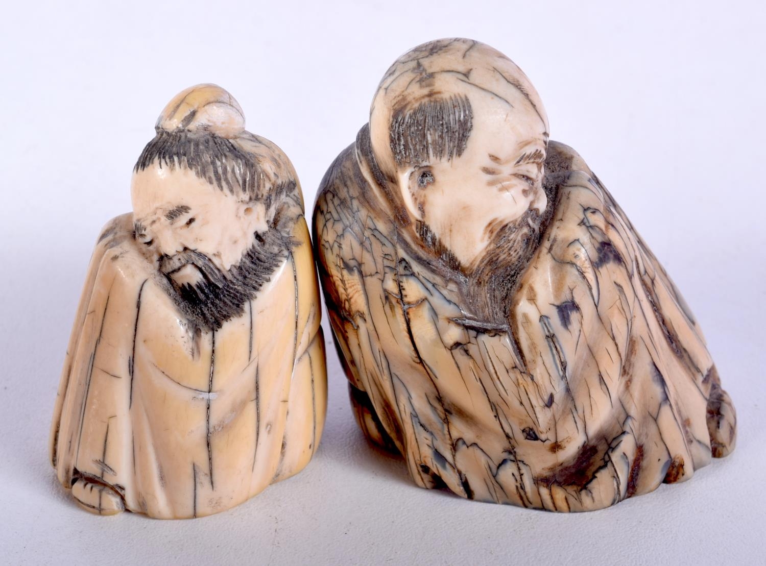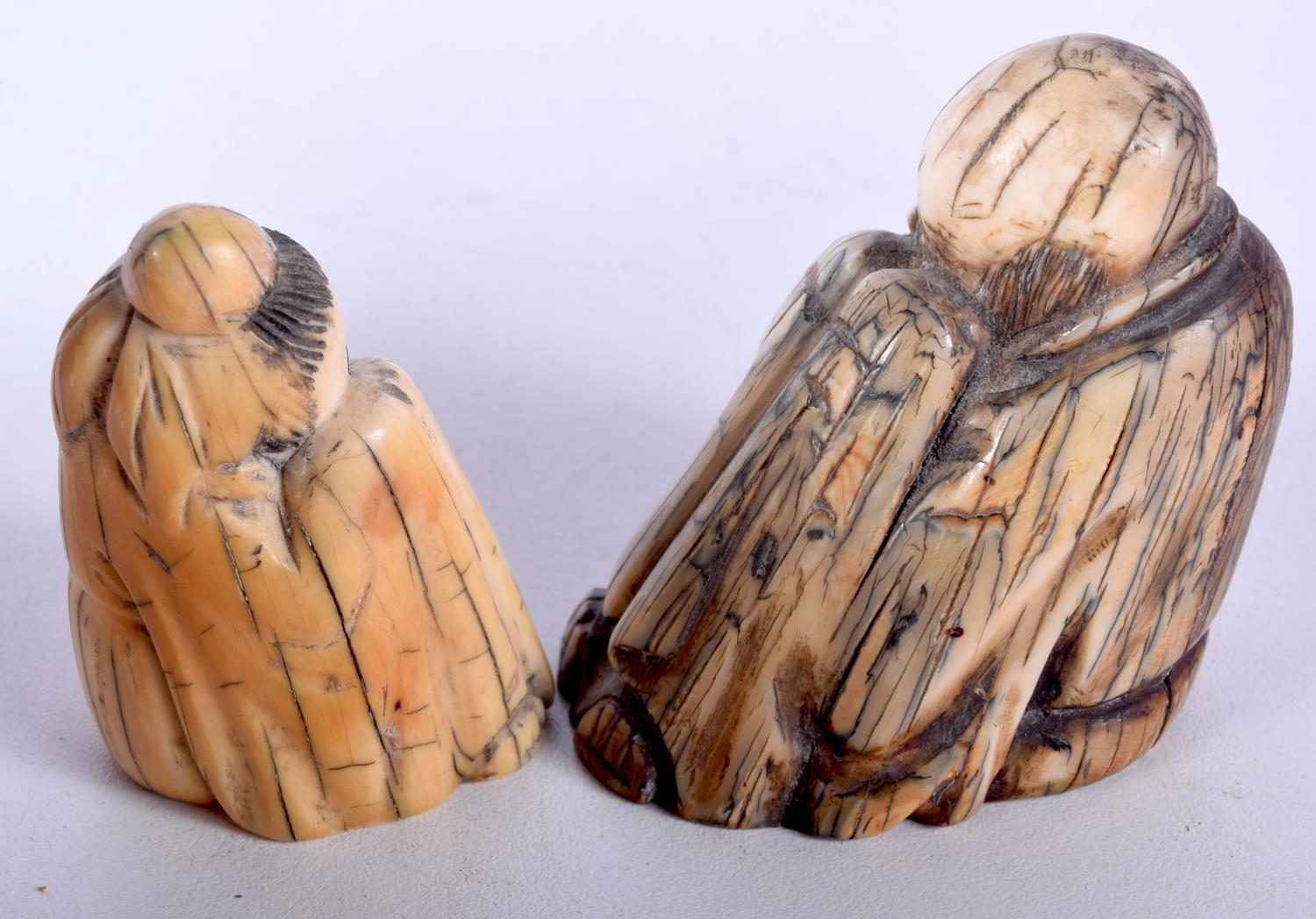 TWO 19TH CENTURY CHINESE CARVED MAMMOTH IVORY FIGURES OF SCHOLARS. Largest 5.5 cm x 5.5 cm. (2)