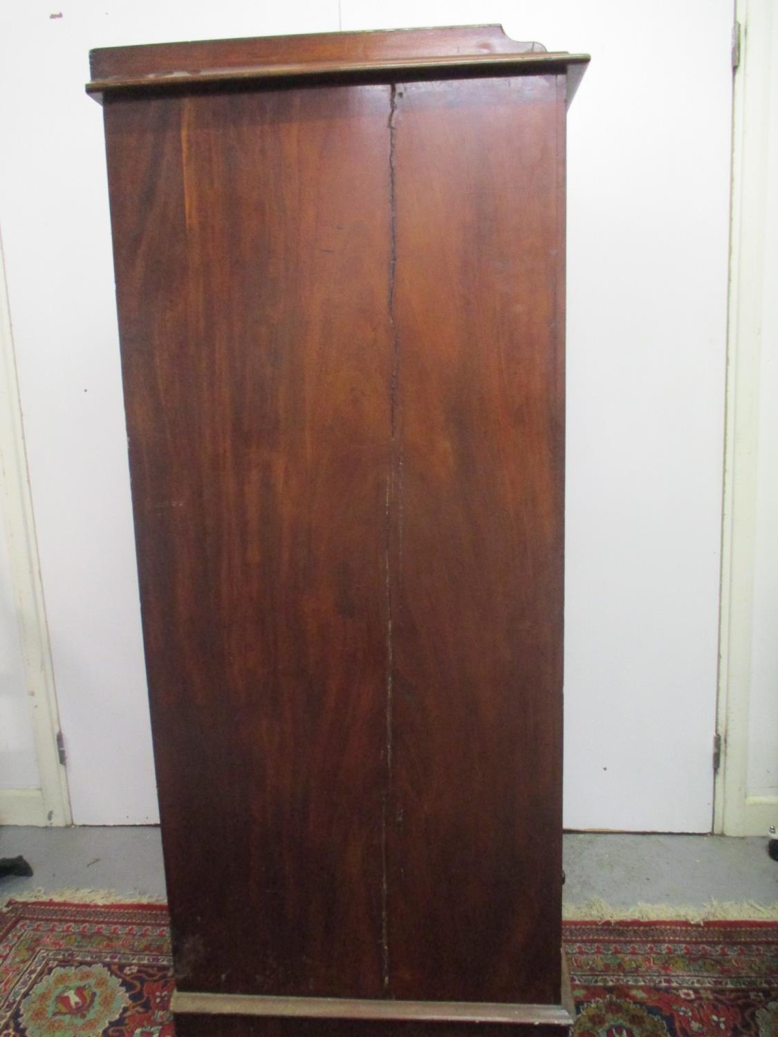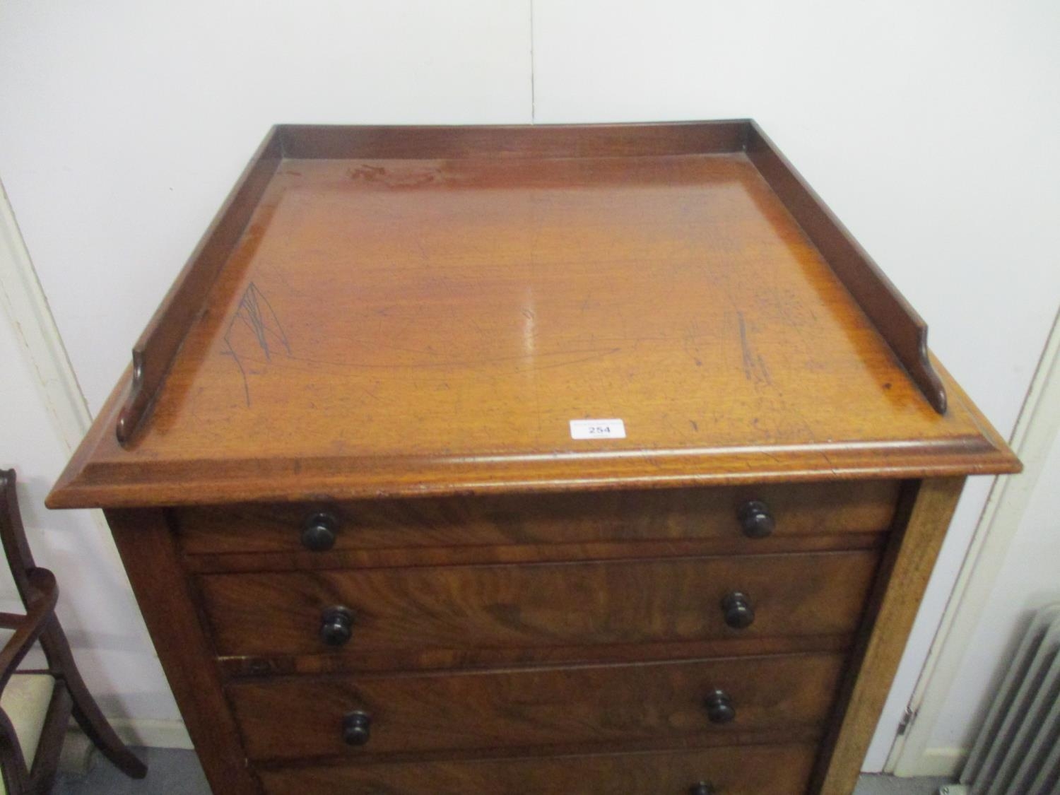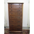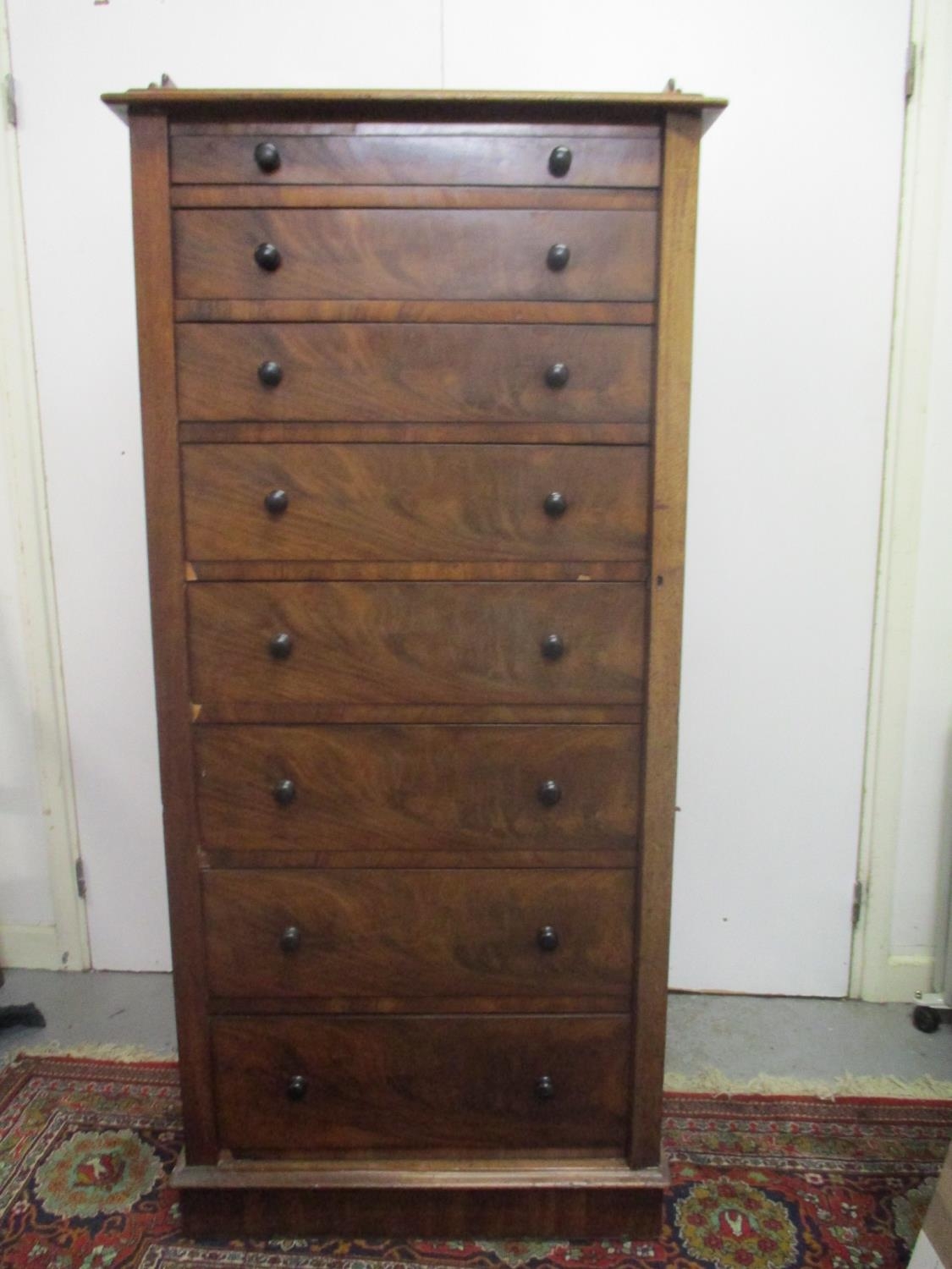 A Victorian mahogany Wellington chest of eight graduated drawers with a galleried top, on a plinth, 57" h, 27" w, 25"d