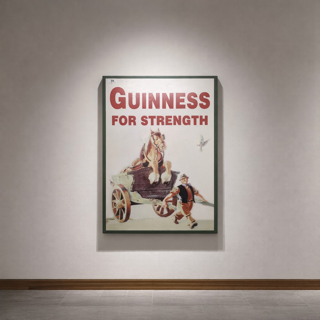 A large printed metal wall sign reading 'Guinness For Streng...
