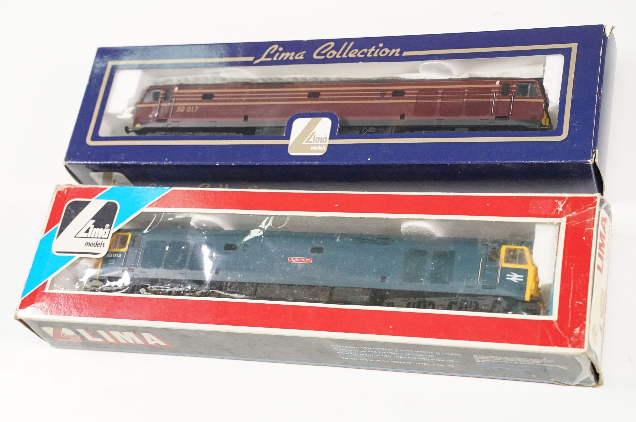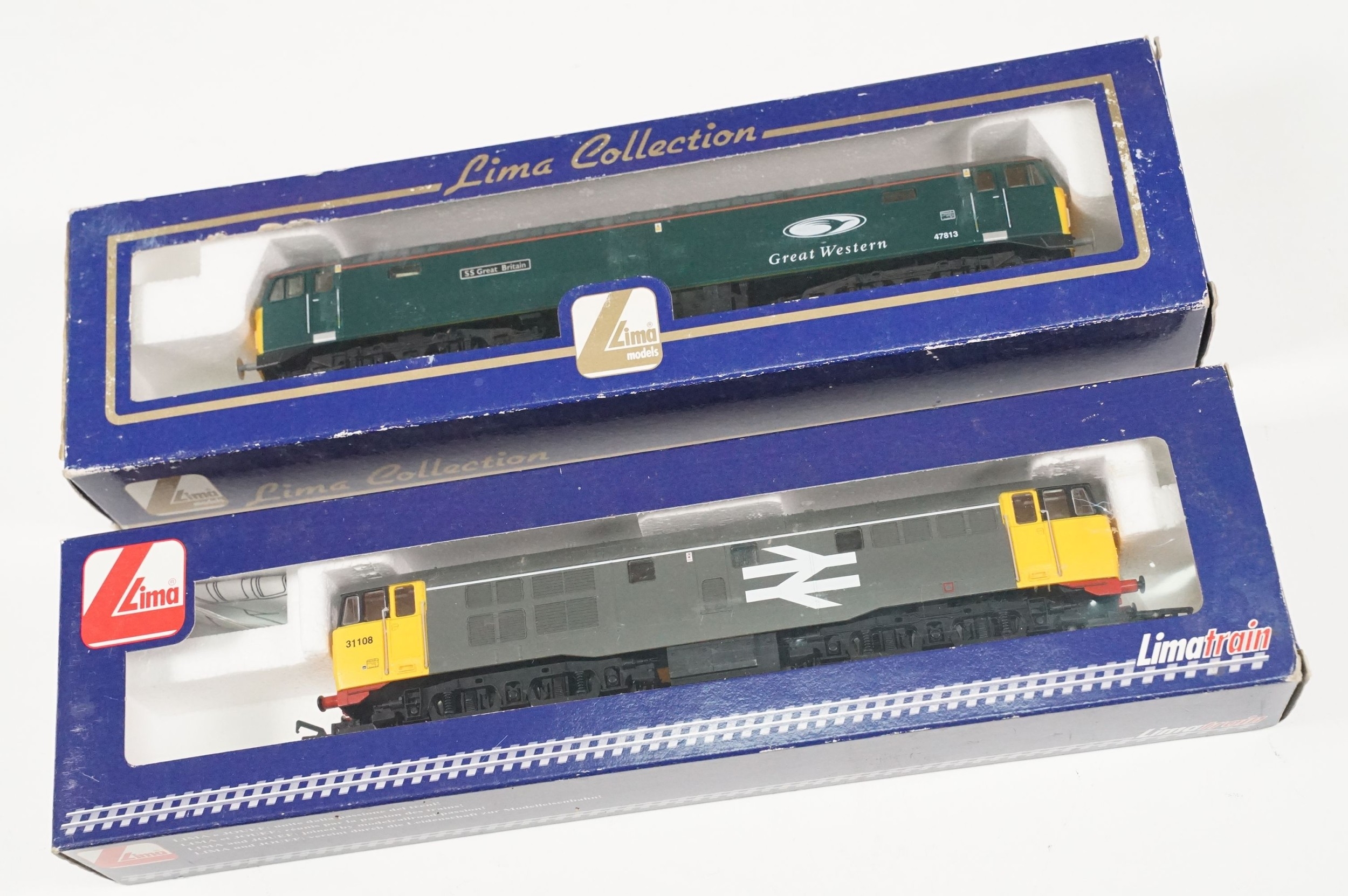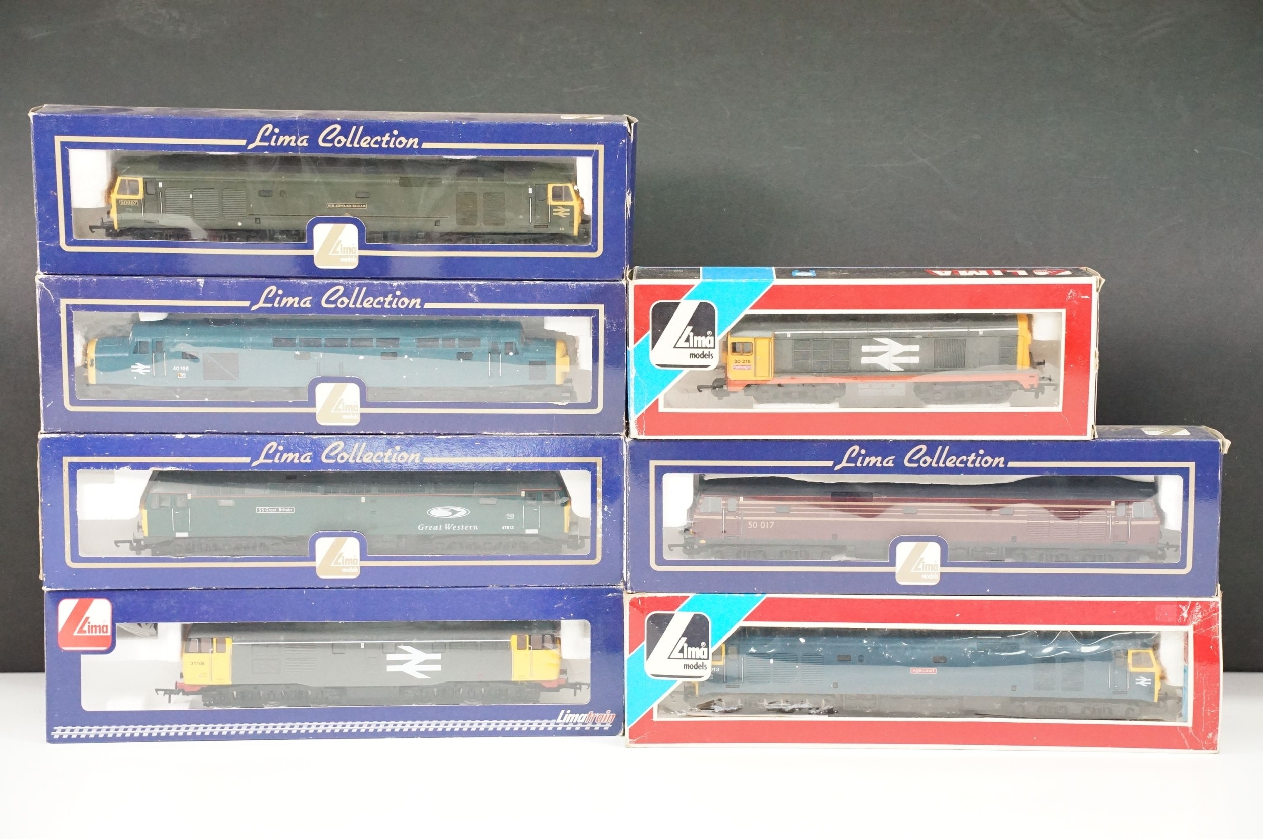 Seven boxed Lima OO gauge locomotives to include 40126 Intercity Diesel Locomotive, 50013 Agincourt Intercity Diesel Locomotive, 50007 Sir Edward Elgar Intercity Diesel Locomotive, L204645 Class 47813 SS Great Britain Great Western GWR Diesel Locomotive, L205175 Class 50017 Diesel Locomotive and L204908 Class 31108 BR Intercity Diesel Locomotive, 20215 Railfreight Intercity Diesel Locomotive