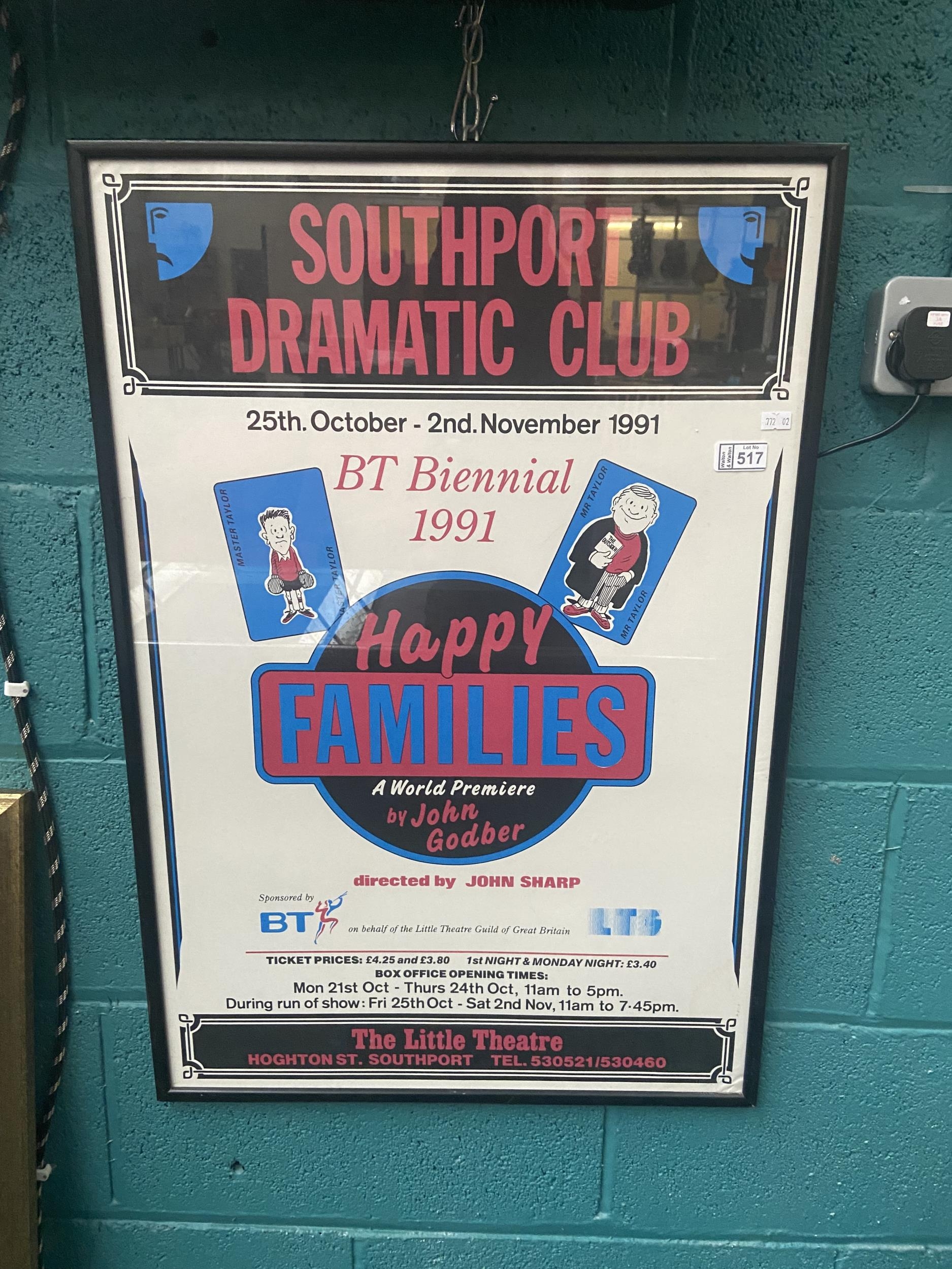 Framed and glazed Southport Dramatic Club poster