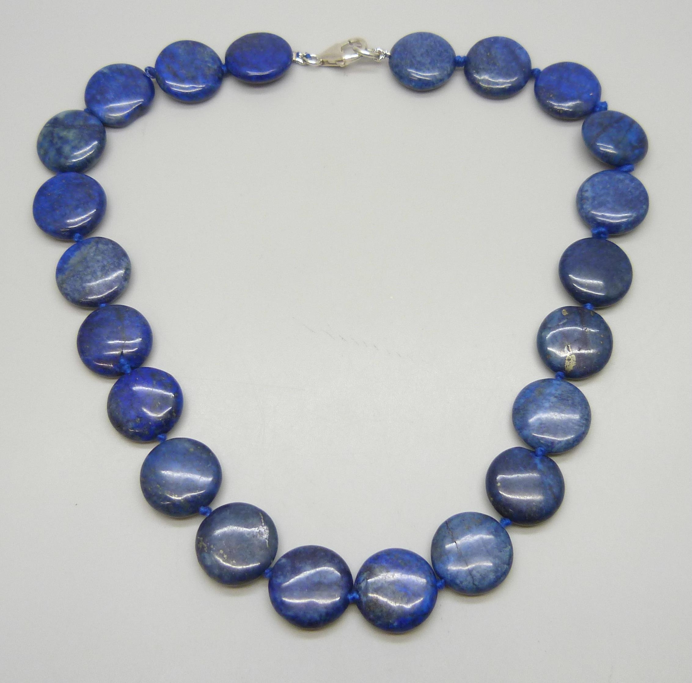 A lapis lazuli necklace with a silver clasp, 85g, 46cm