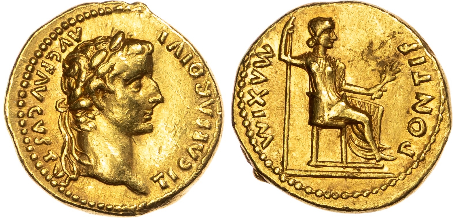Tiberius (AD 14-37) AV Aureus, Lugdunum, c. AD 14-17, 7.83g.
