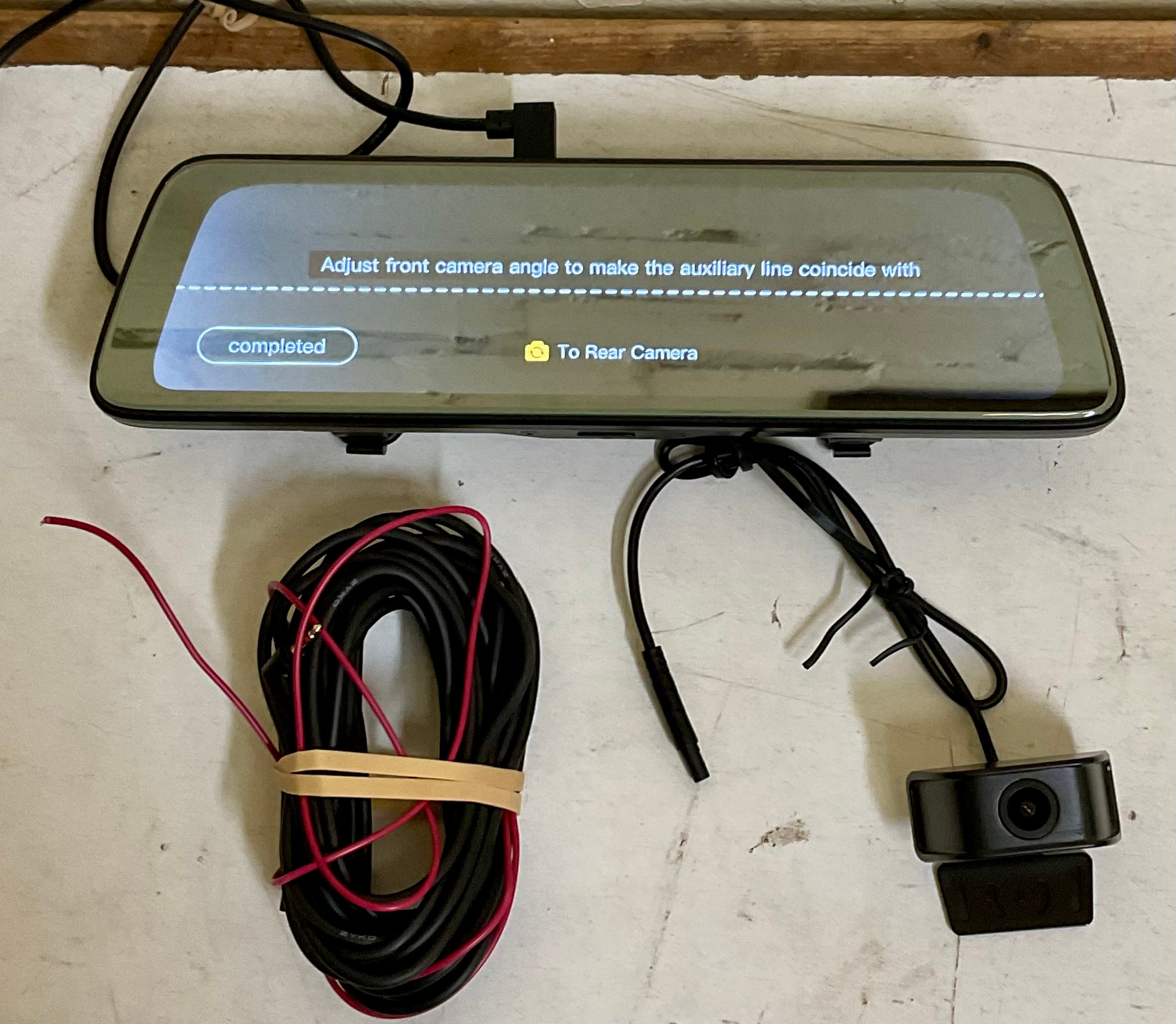 ROAD ANGEL HALO VIEW REAR VIEW MIRROR/DASHCAM WITH REVERSING CAMERA, HAS CHARGING CABLE AV CABLE FOR REAR CAMERA AND REVERSE LIGHT CABLE