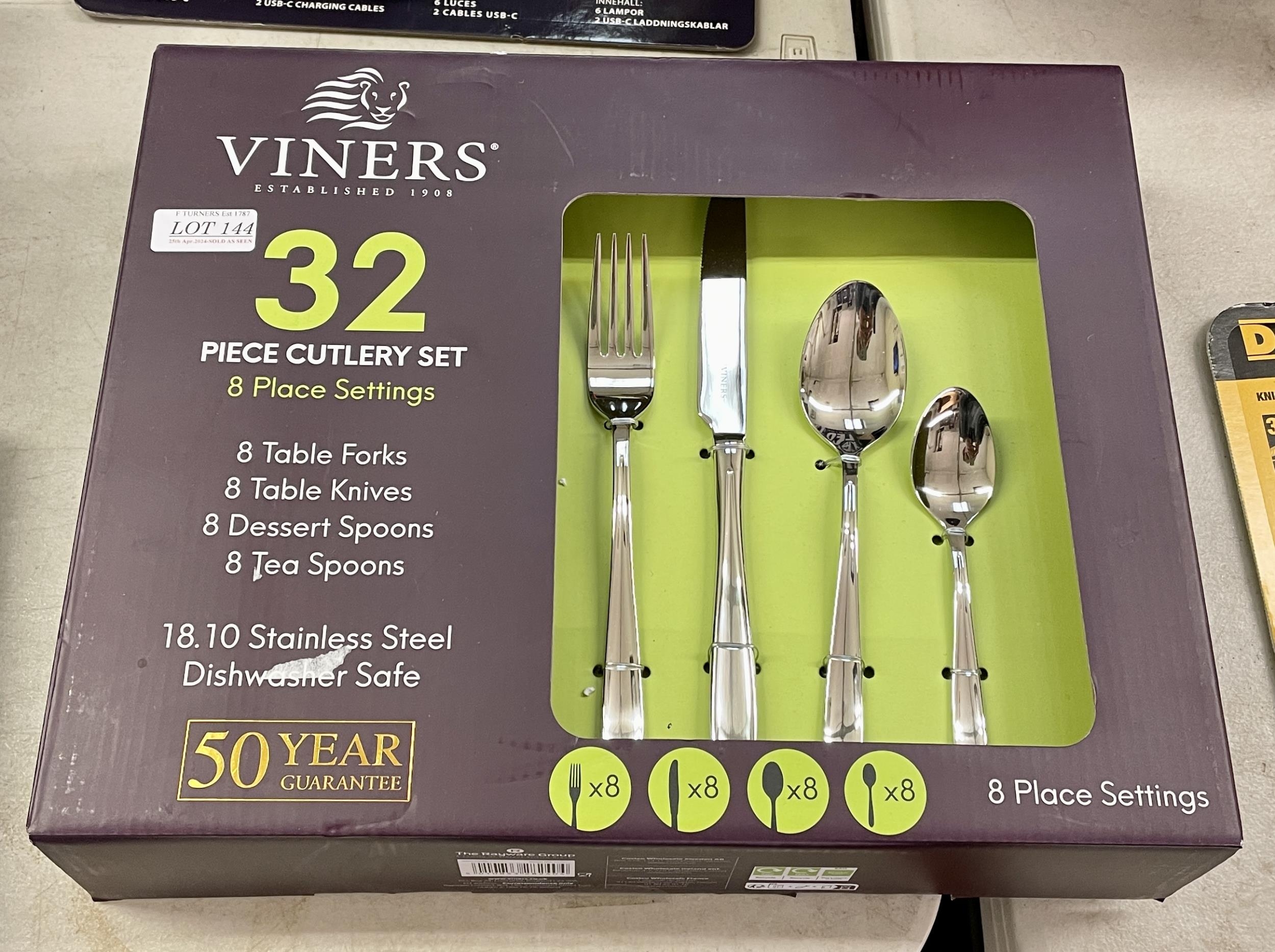 BOXED VINERS 31 PIECE CUTLERY SET (MISSING ONE FORK)