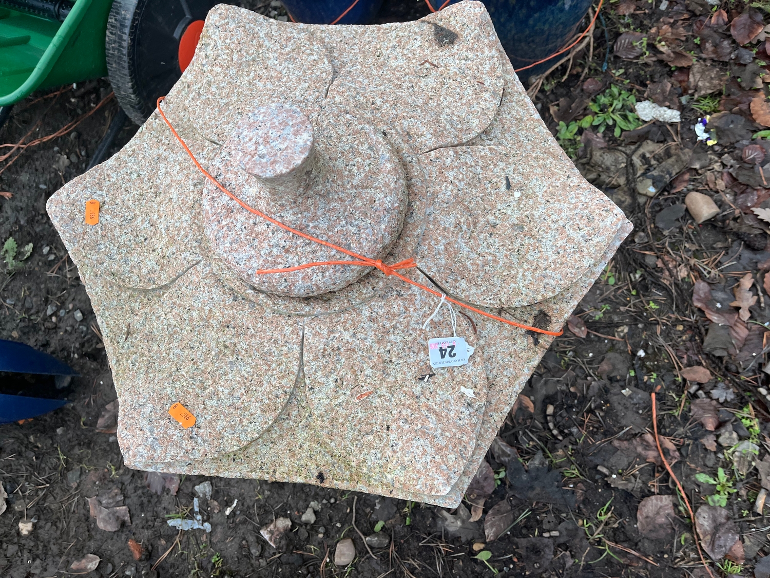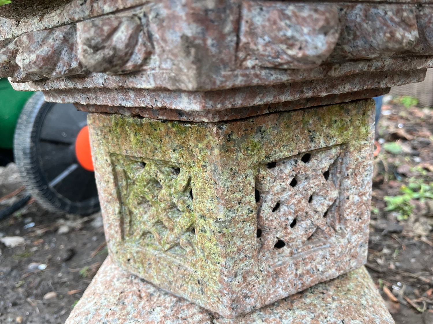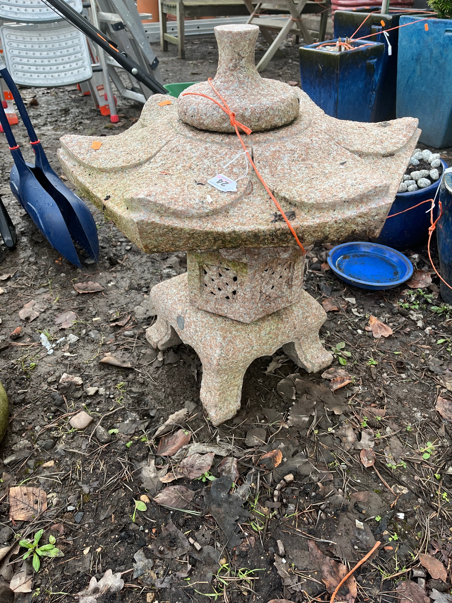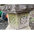 A PINK GRANITE PAGODA constructed in four sections 65cm high Condition Report; no obvious damage