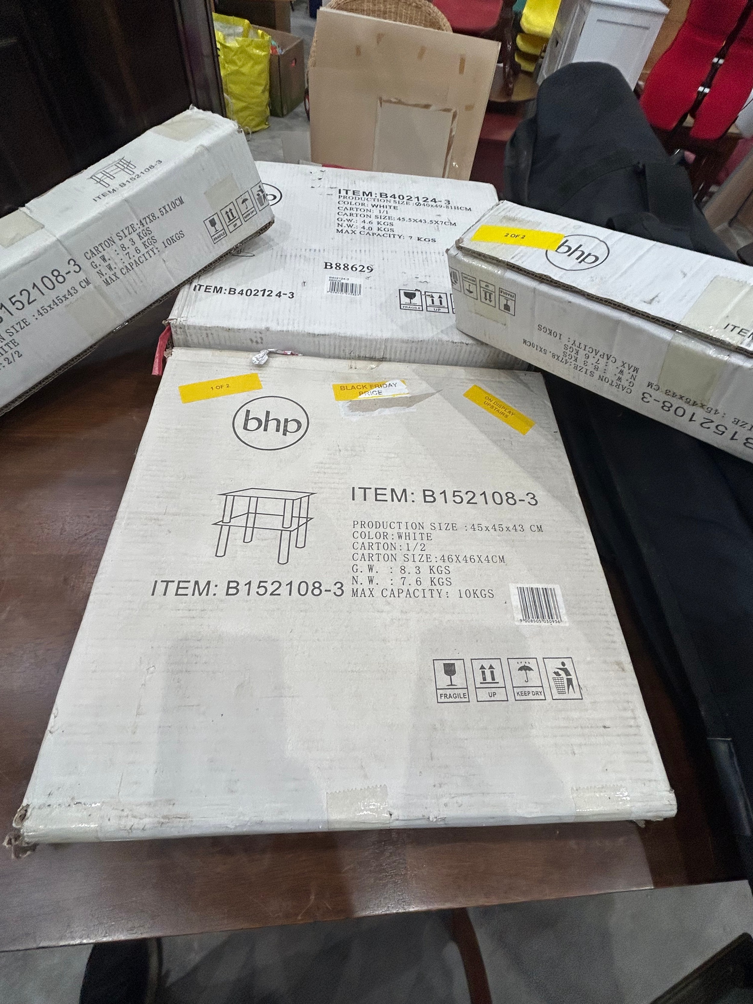 BHP Shelf, White Glass, LxBxH in cm: 45x45x43 And BHP Adjustable height side table
