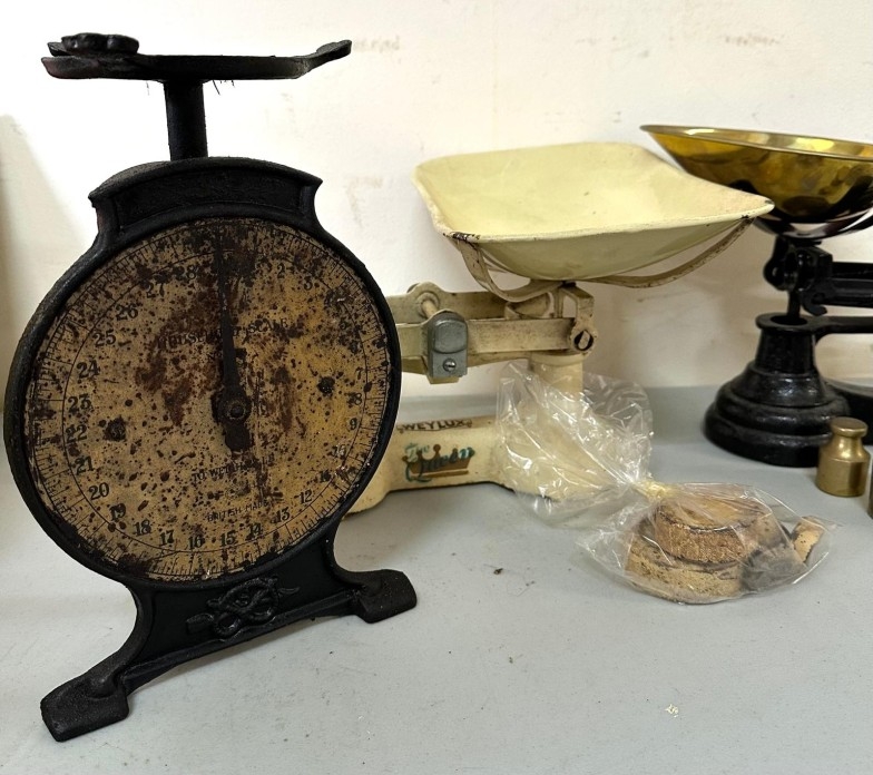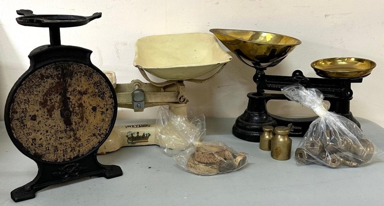 Three kitchen scales various ages