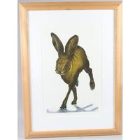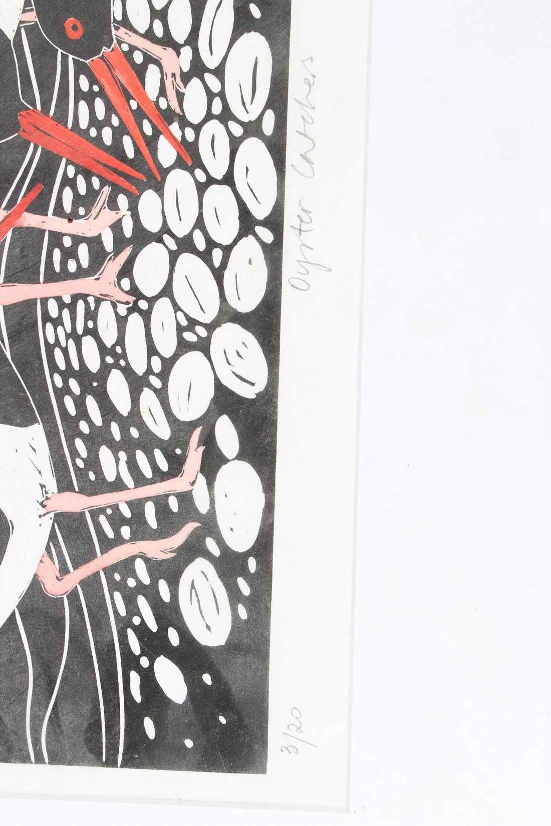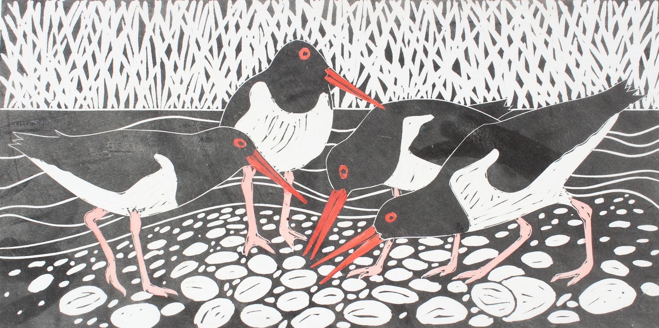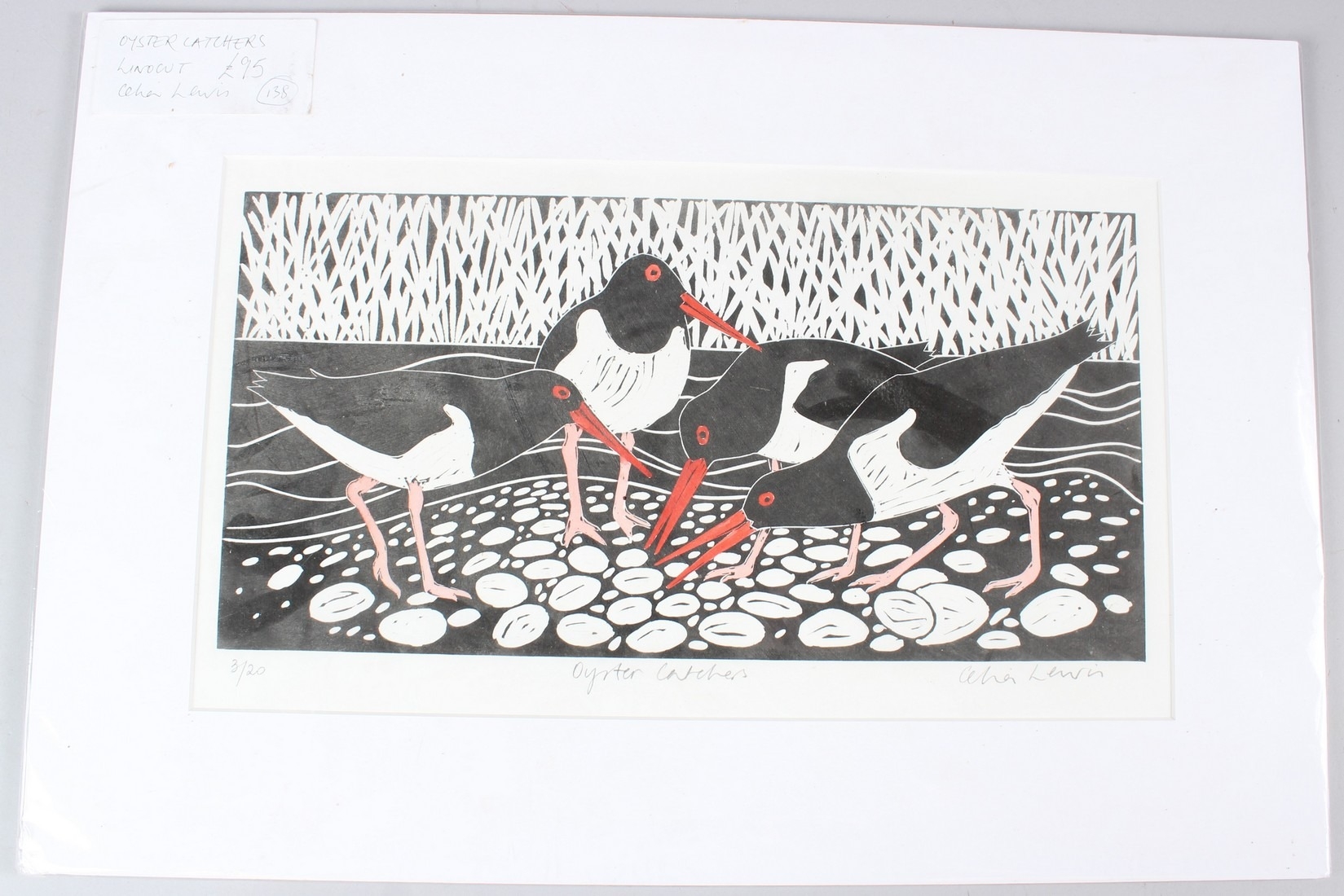 CELIA LEWIS (b.1948) 'Oyster Catchers' linoprint 3/20 signed and titled in pencil unframed 20 x 40cm image
