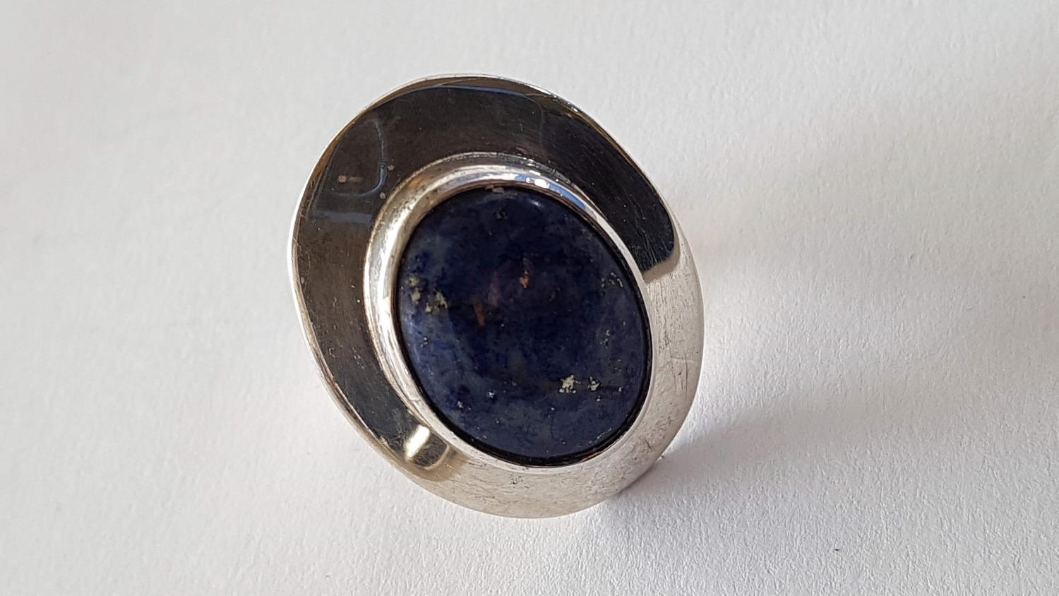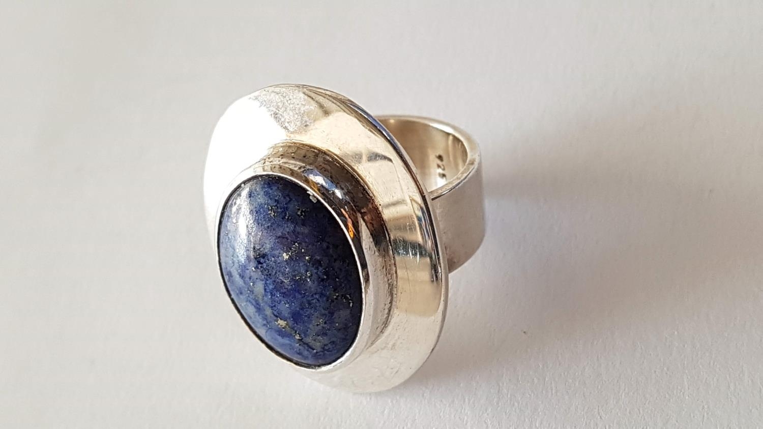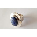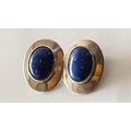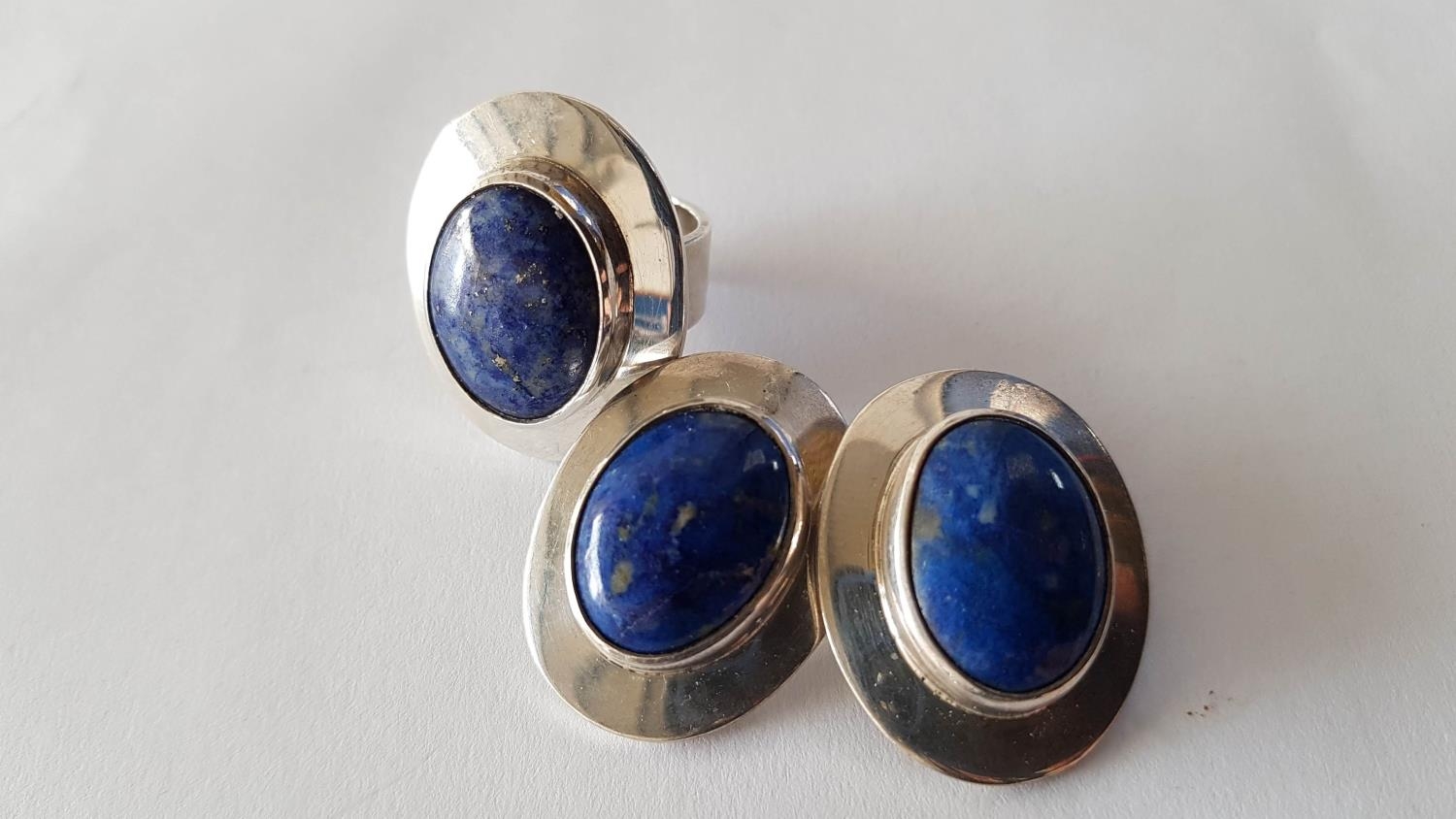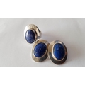 Silver Set Ring and Pair of Clips with Large Blue Lapis in Center