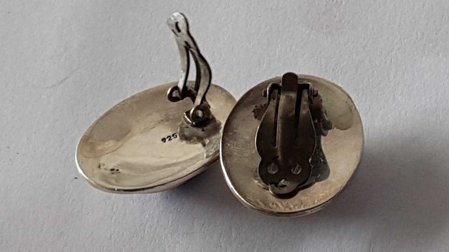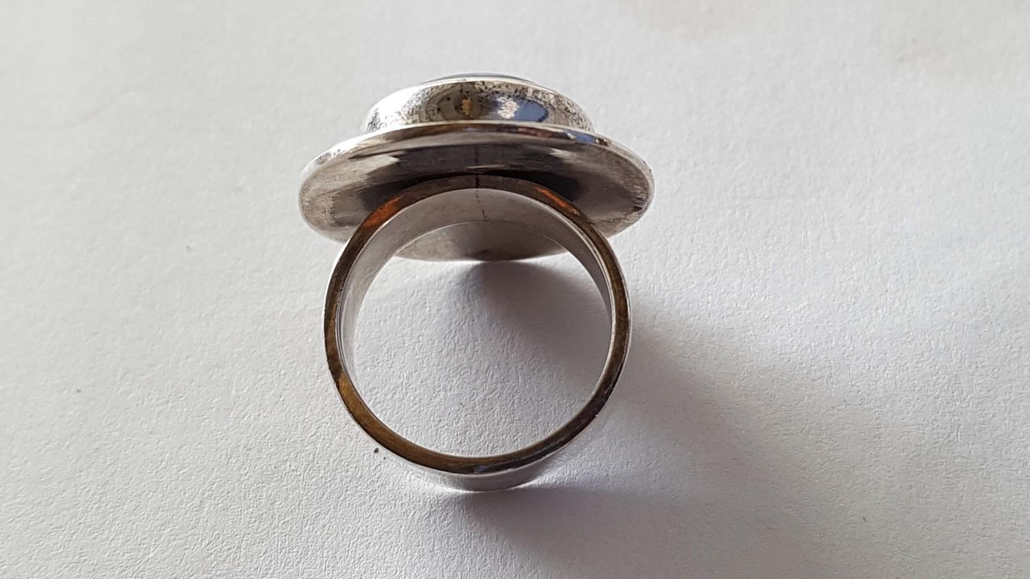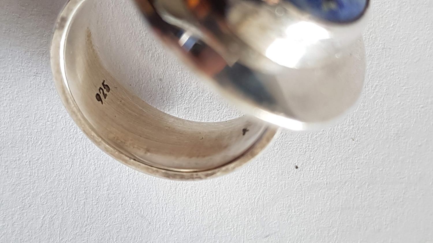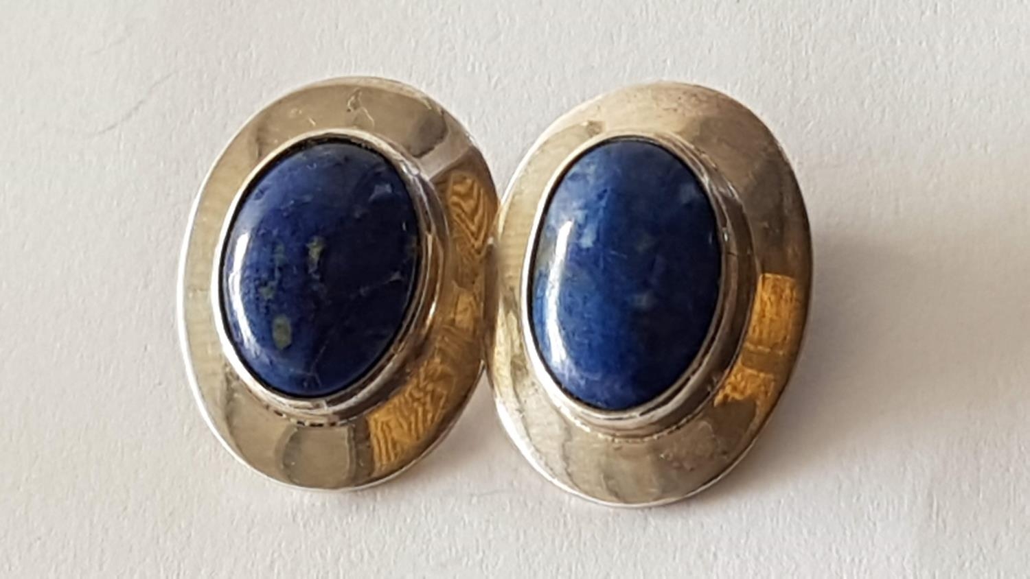 Silver Set Ring and Pair of Clips with Large Blue Lapis in Center