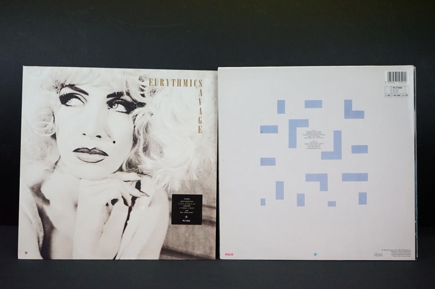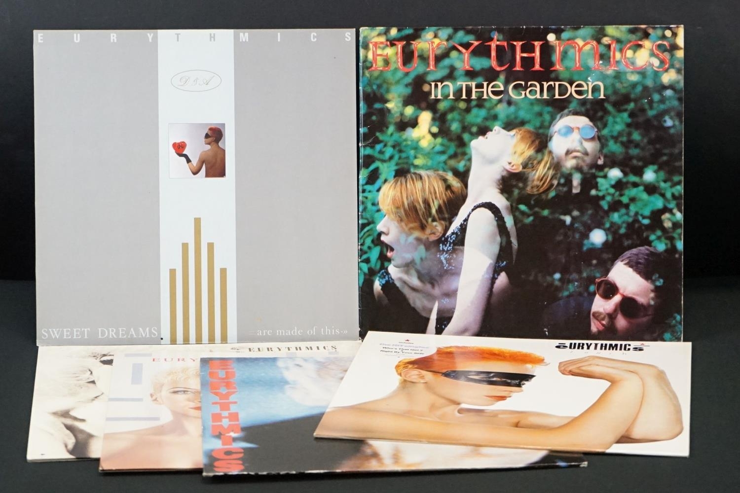 Vinyl - Eurythmics - 6 Original UK 1st Pressing albums, including: In The Garden (1981, Uk 1st Press, RCA Records PL 70006) VG+ / EX + Printed Inner. Sweet Dreams (Are Made Of This) (1983) EX / EX + Printed Inner. Touch (1983) EX / EX + Printed Inner. Be Yourself Tonight (1985) VG+ / EX + Printed Inner + Insert. Revenge (1986) EX / EX + Printed Inner. Savage (1987) EX / EX + Printed Inner + Unused Limited Poster