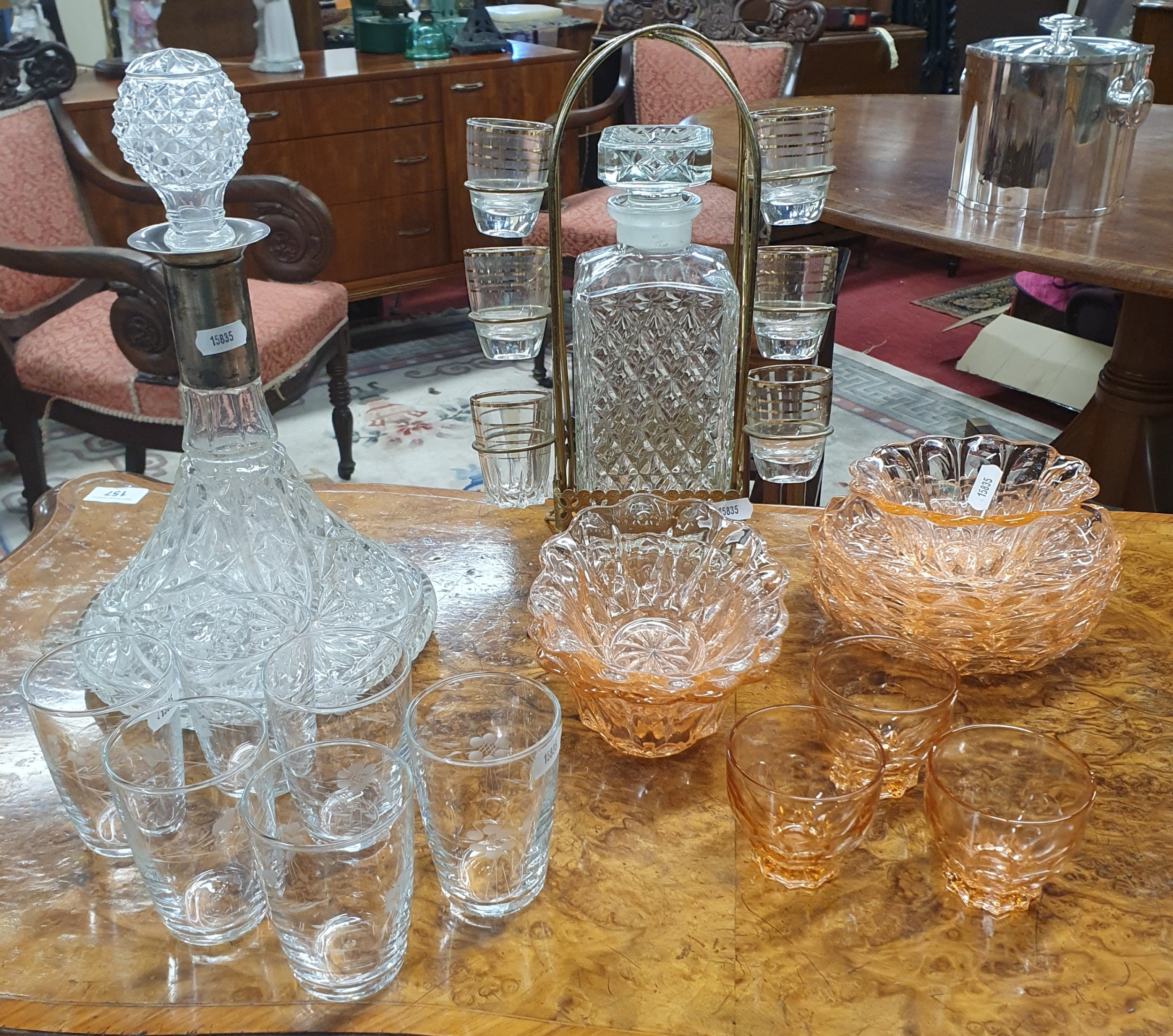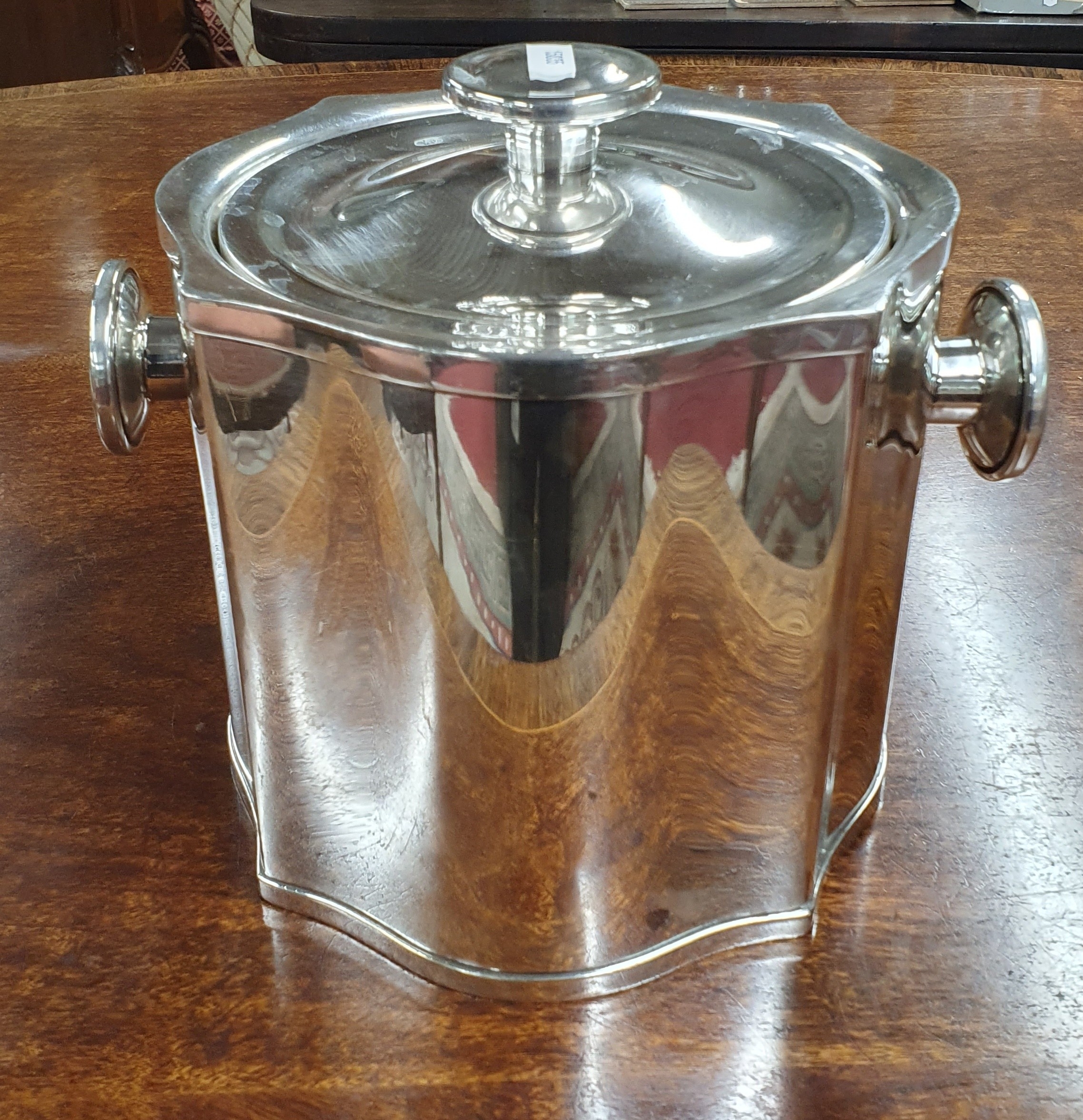 A good Silver plated Ice Bucket along with a Ships Decanter and other desert service etc. TB 32 cm approx.