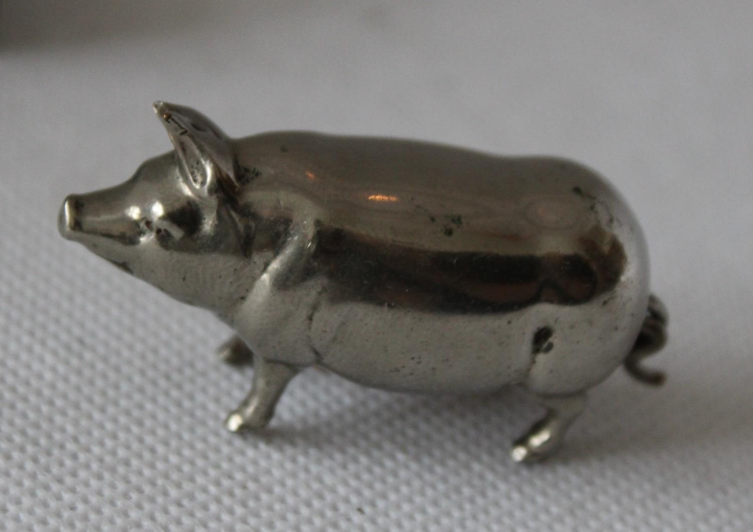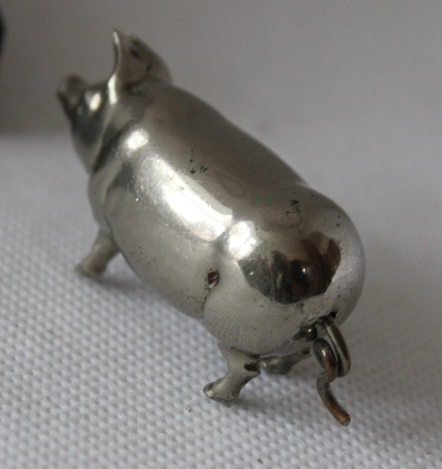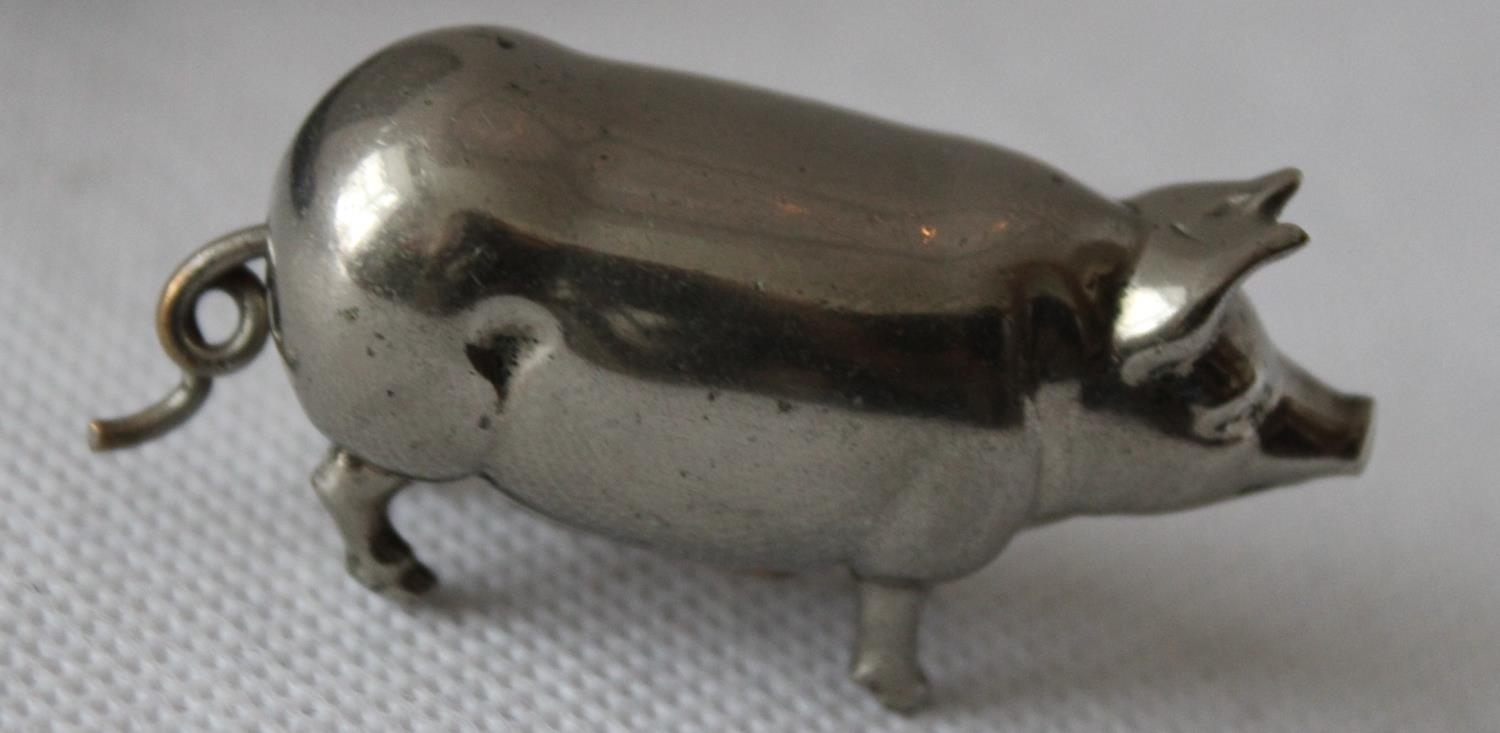 Vintage Silver Pig with Tape Measure - Pig measures 5cm in length ( possibly silver)