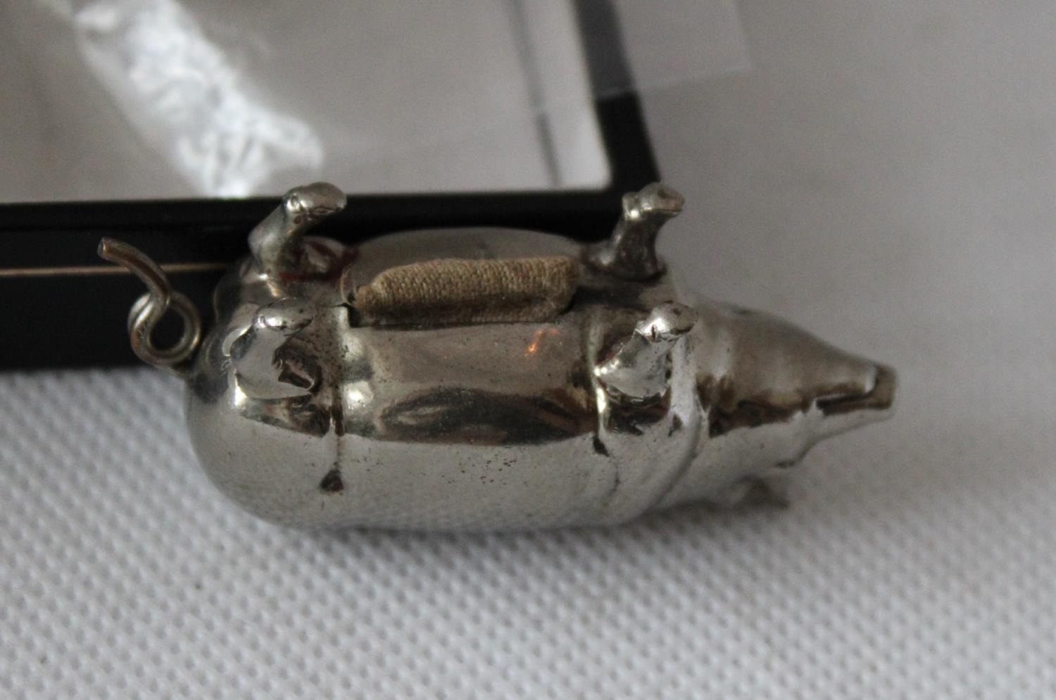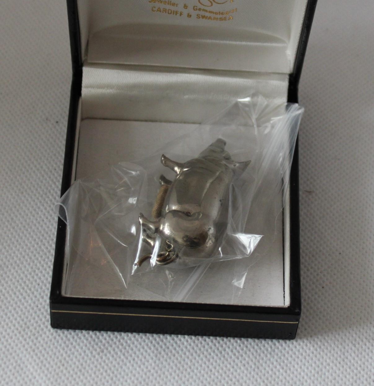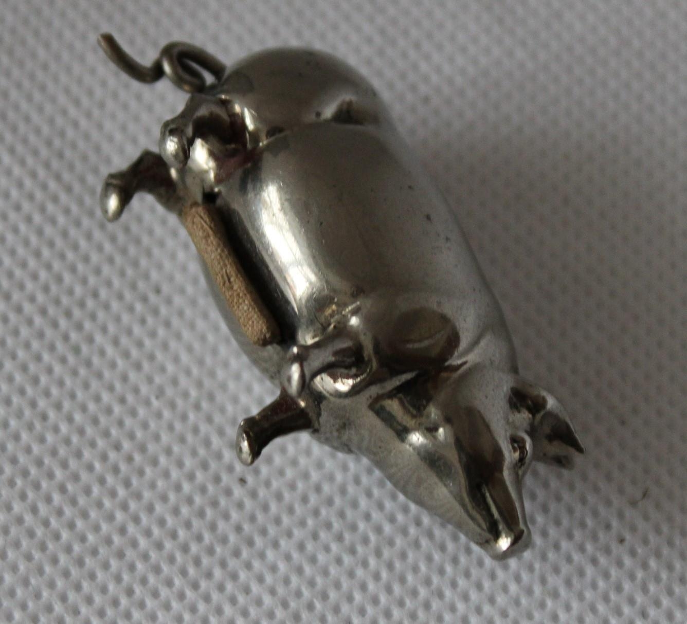 Vintage Silver Pig with Tape Measure - Pig measures 5cm in length ( possibly silver)