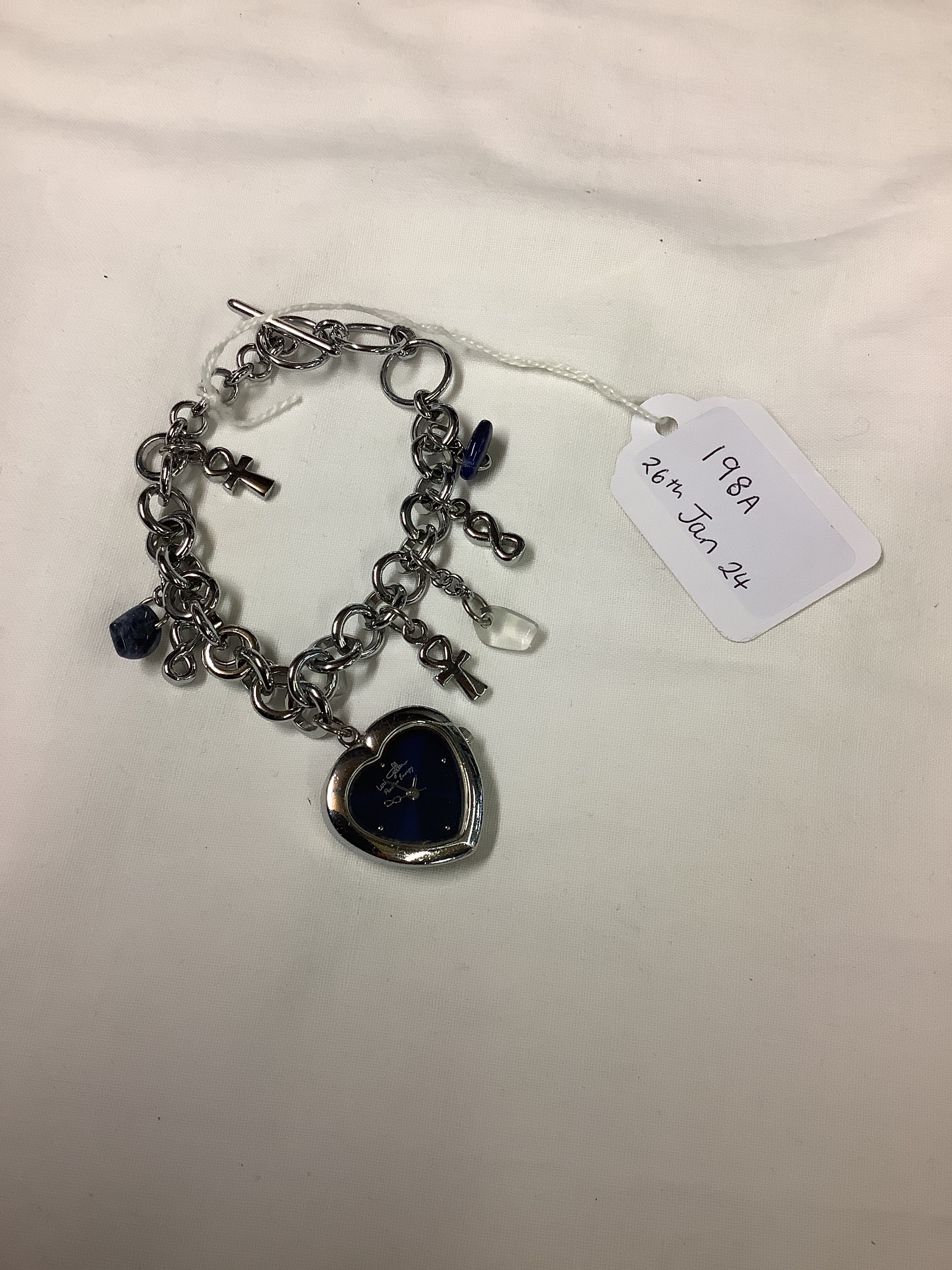 A Uri Geller blue face chain link bracelet watch