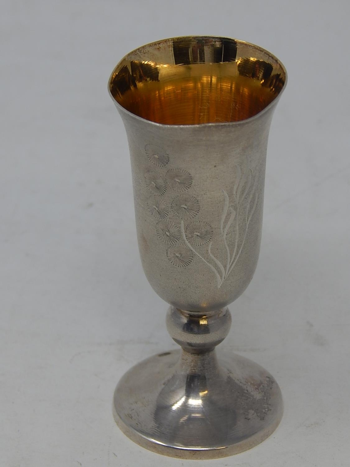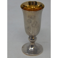 Russian Silver Vodka Cup with Gilded Interior: Hallmarked 916: Height 8cm: Weight 45g