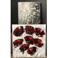 Ann Pollard, still life of poppies and another still life of flowers, oil on canvas, unframed