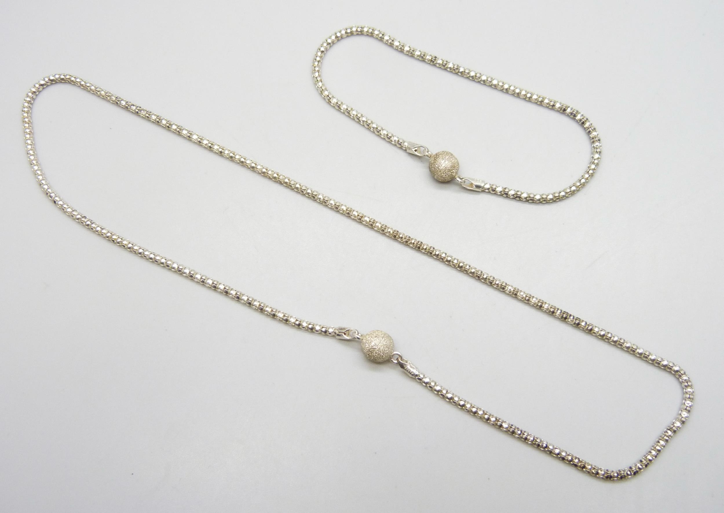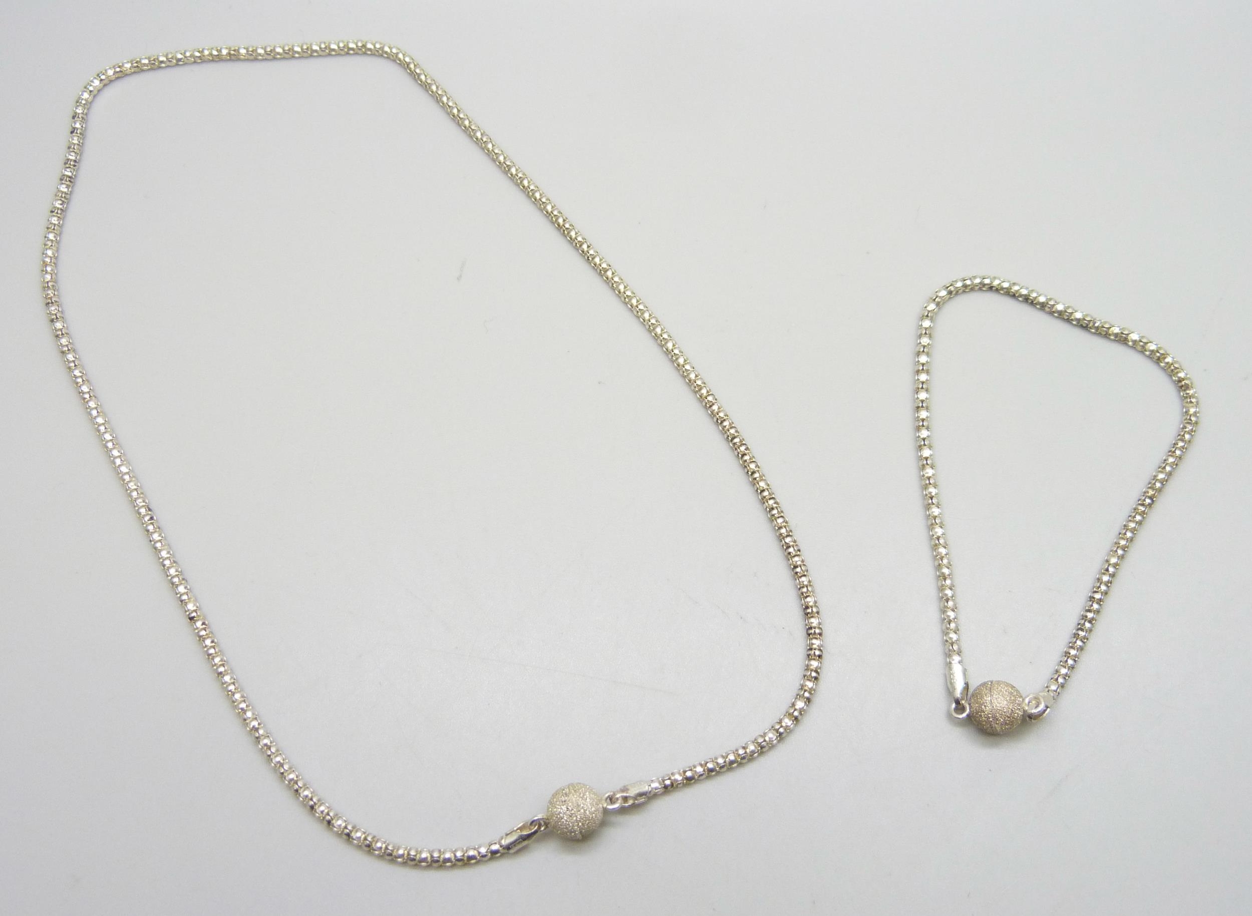 A matching silver necklace and bracelet with magnetic clasps, 13g