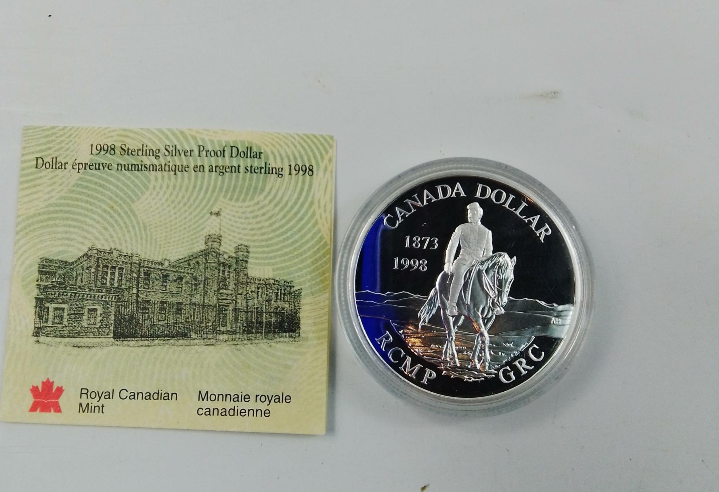 1998 CANADA MINT R.C.M.P Silver proof Dollar. Encapsulated in coin holder and in excellent order , complete with certificate.
