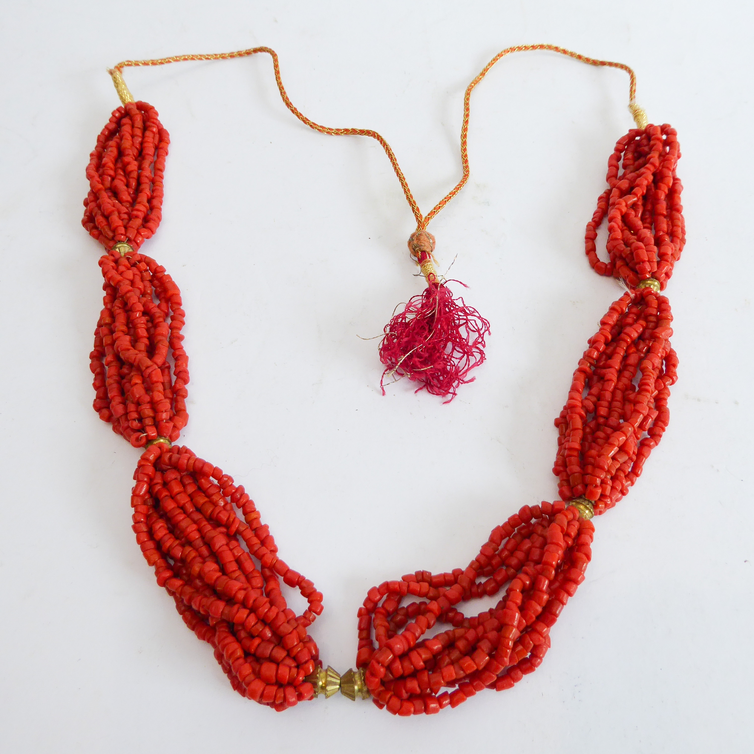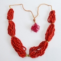 a coral necklace;