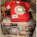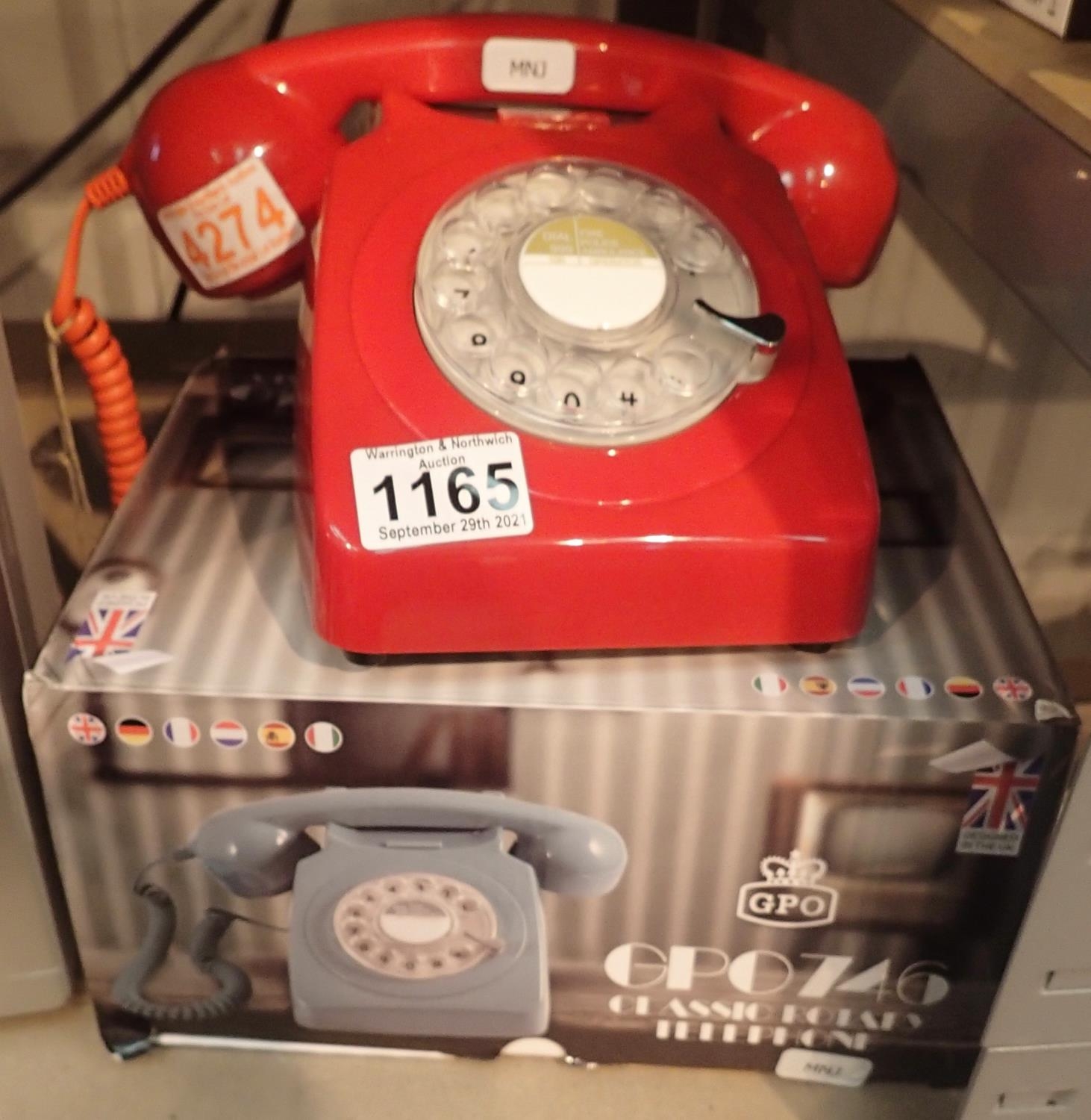 Red, GPO746 Retro rotary telephone replica of the 1970s classic, compatible with modern telephone banking and any standard analogue landline, with instructions, boxed; working at time of lotting. P&P Group 1 (£14+VAT for the first lot and £1+VAT for subsequent lots)