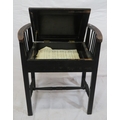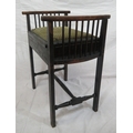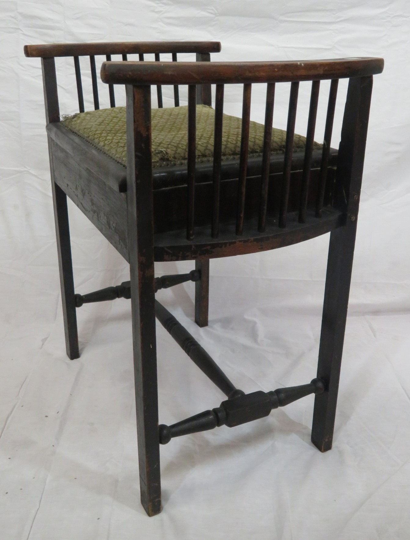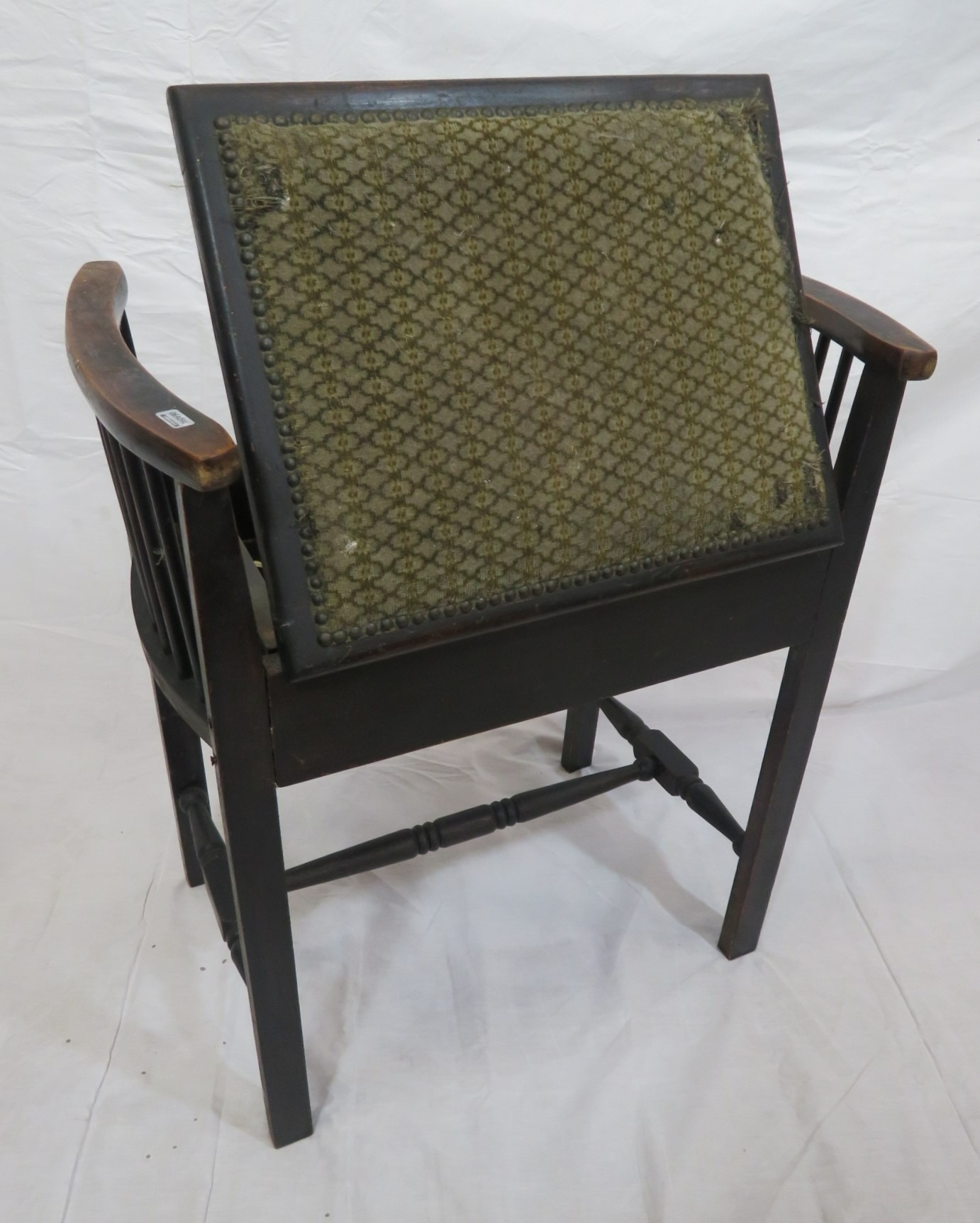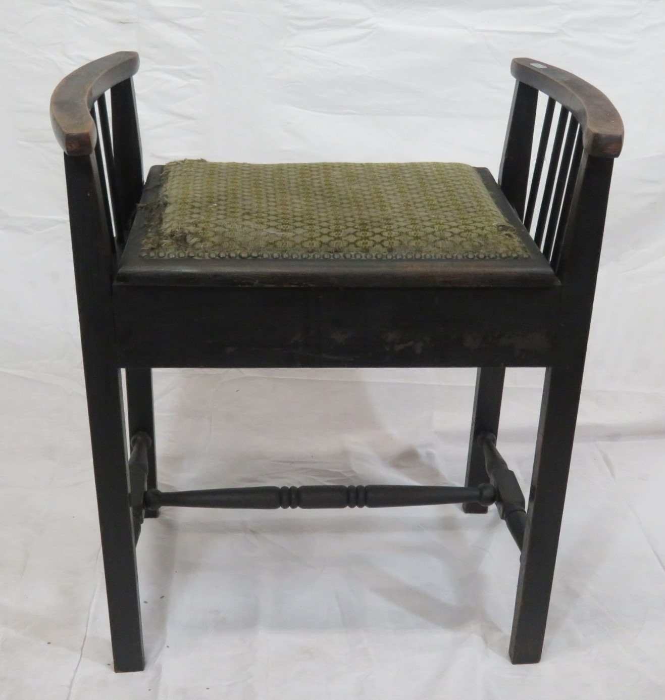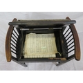 Edward piano stool with upholstered lift-up lid, railed sides, on tapering legs with stretchers